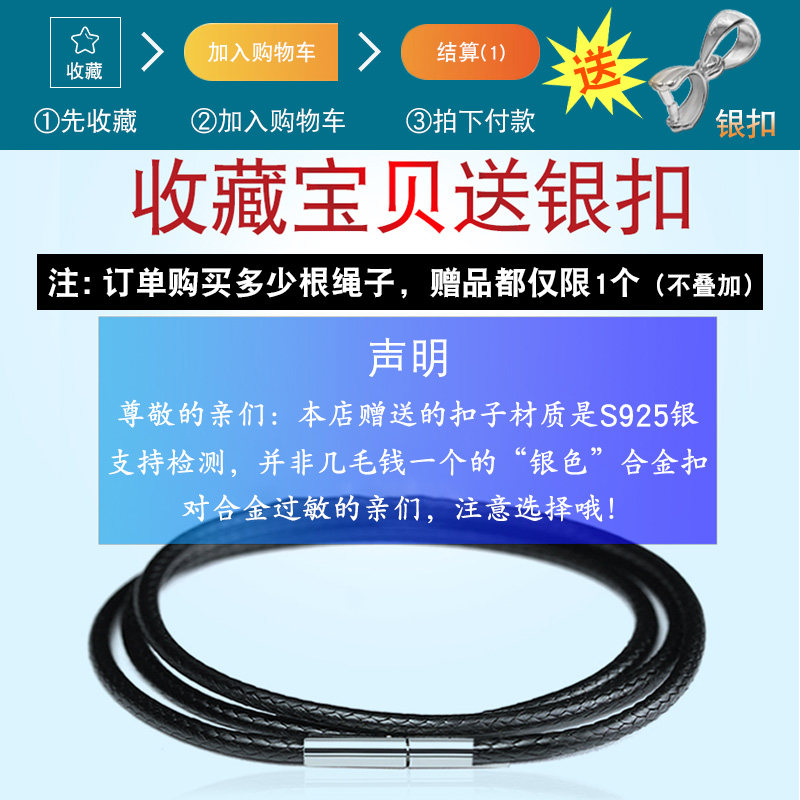 📚 黄金吊坠挂绳黑色项链绳女红黑绳小皮绳翡翠玉器挂件蜡皮绳子颈链