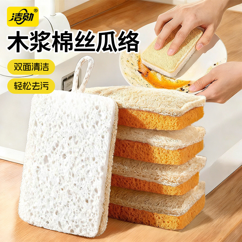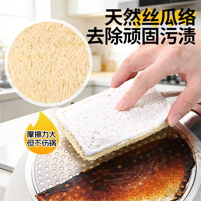 📚 洁勋天然丝瓜络木浆棉洗碗海绵擦厨房专用刷锅神器双面清洁百洁布