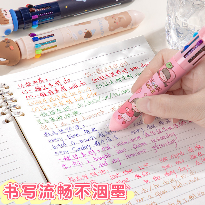 📚 多色圆珠笔按压式彩色多功能笔卡通可爱创意奖励儿童奖品礼物按动十色圆珠笔多色合一中性笔小学生做笔记专用