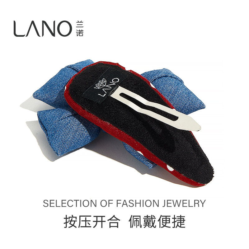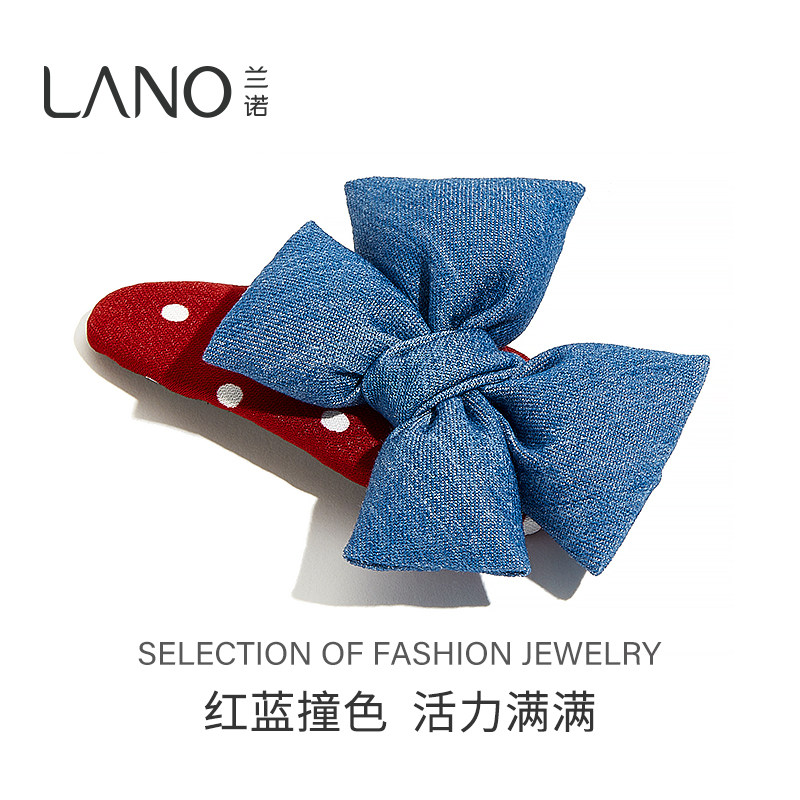 📚 兰诺牛仔蓝蝴蝶结红色发夹女2026新款高端侧边夹前额夹后脑勺夹子