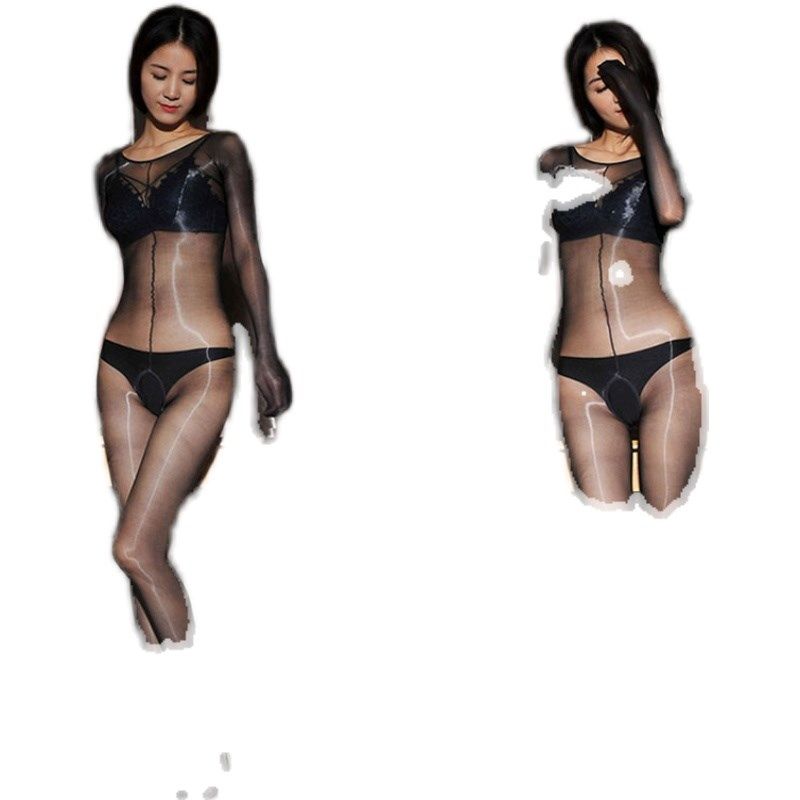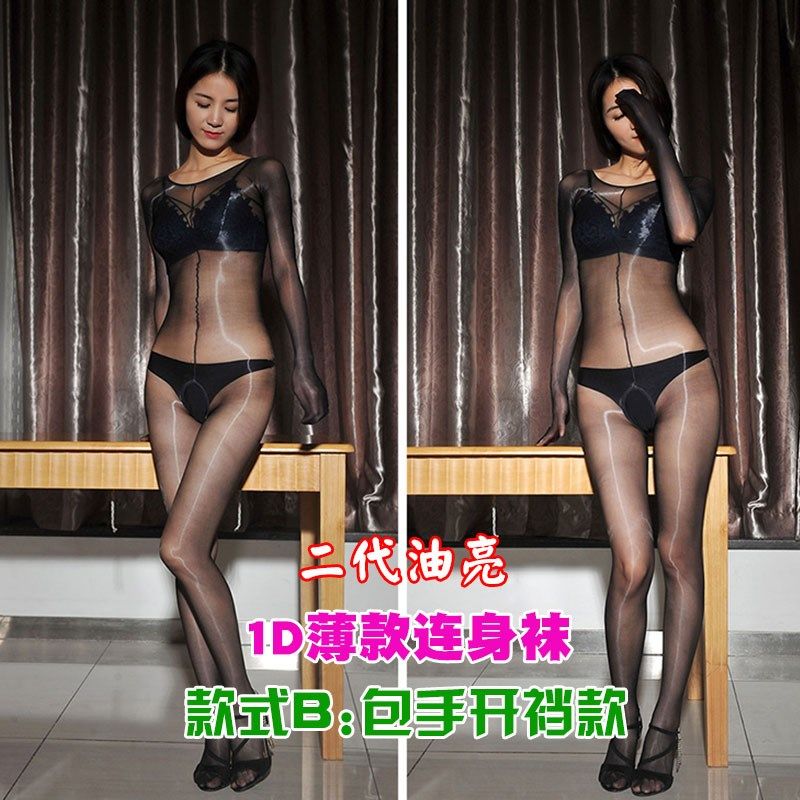 📚 【宏】两片式加裆加大玻璃油光1D透明油亮丝袜加长连体全身连身袜
