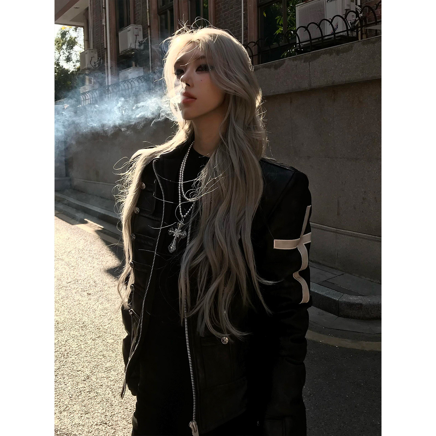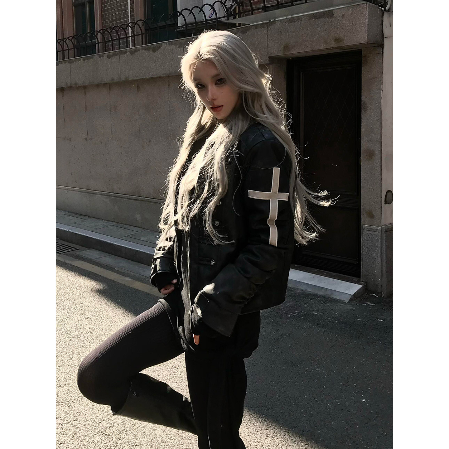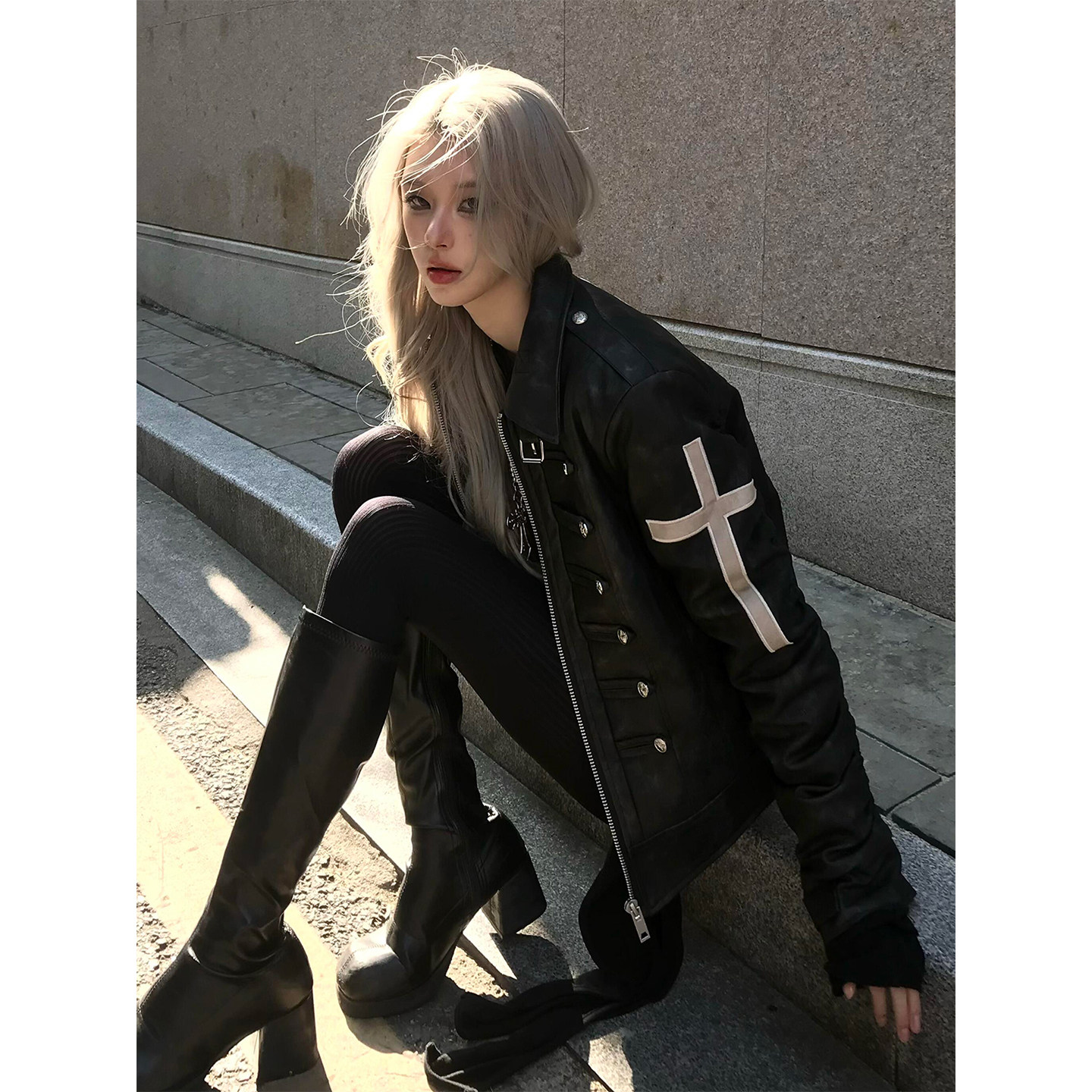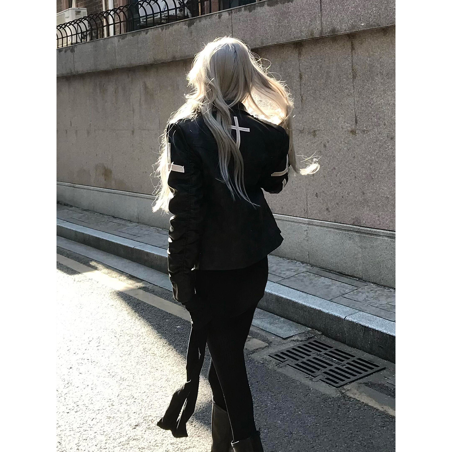 📚 亚文化朋克外套女冬季加厚十字架宫廷风黑色夹克视觉系上衣设计感