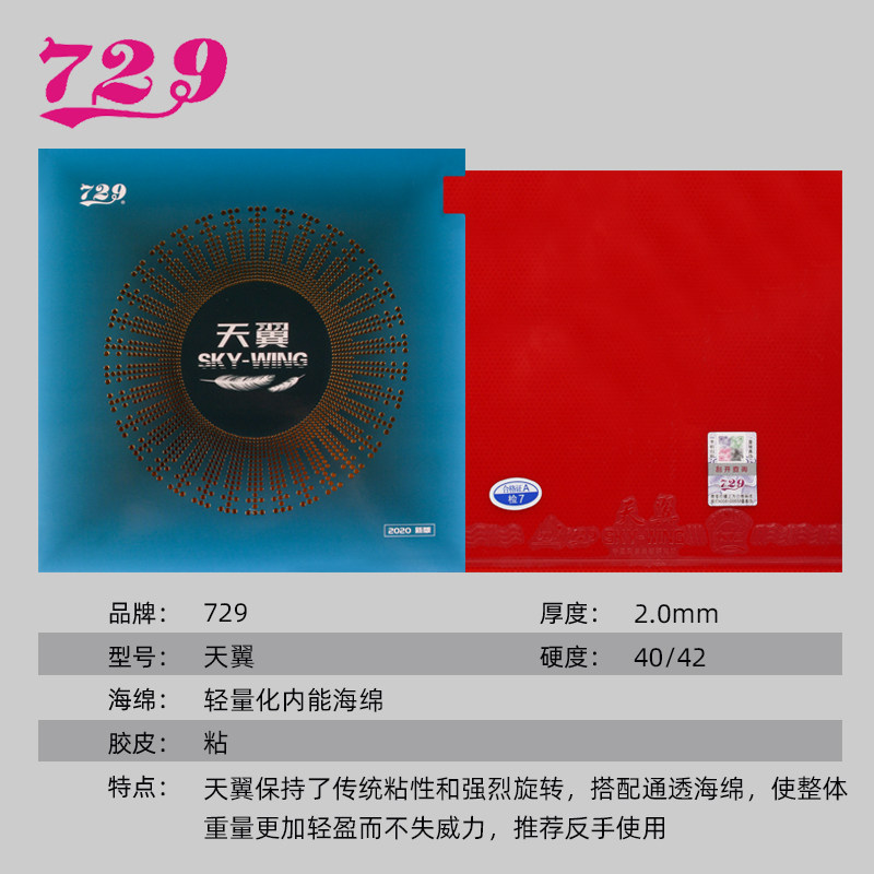 📚 友谊729 乒乓球拍胶皮 天翼 轻量型粘性乒乓球反胶套胶 推荐反手