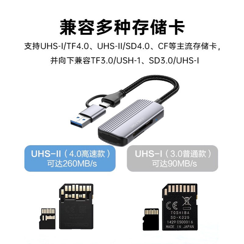 📚 双头二合一4.0双卡读卡器USB4.0/Typec接头SD/TF双卡同读设备通用