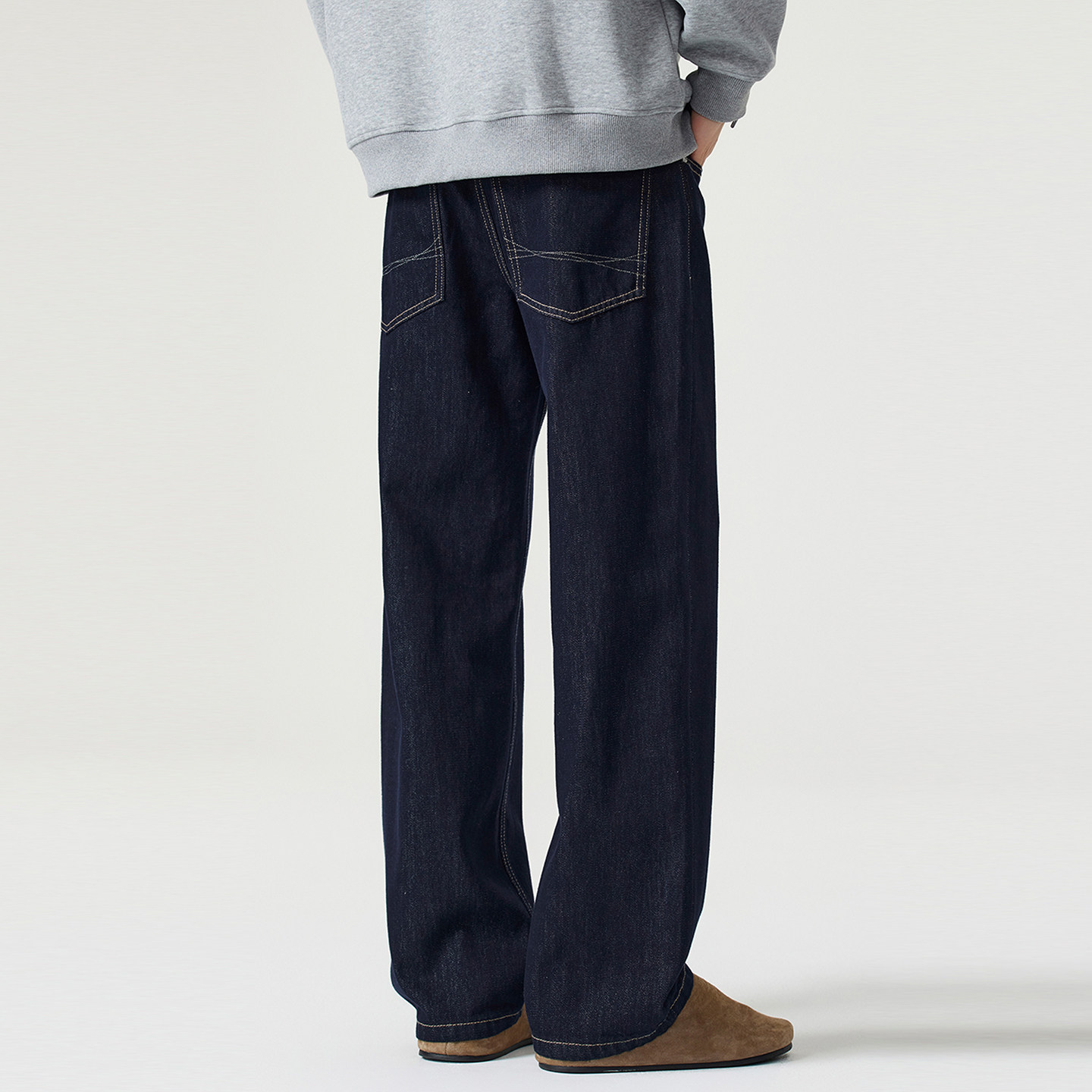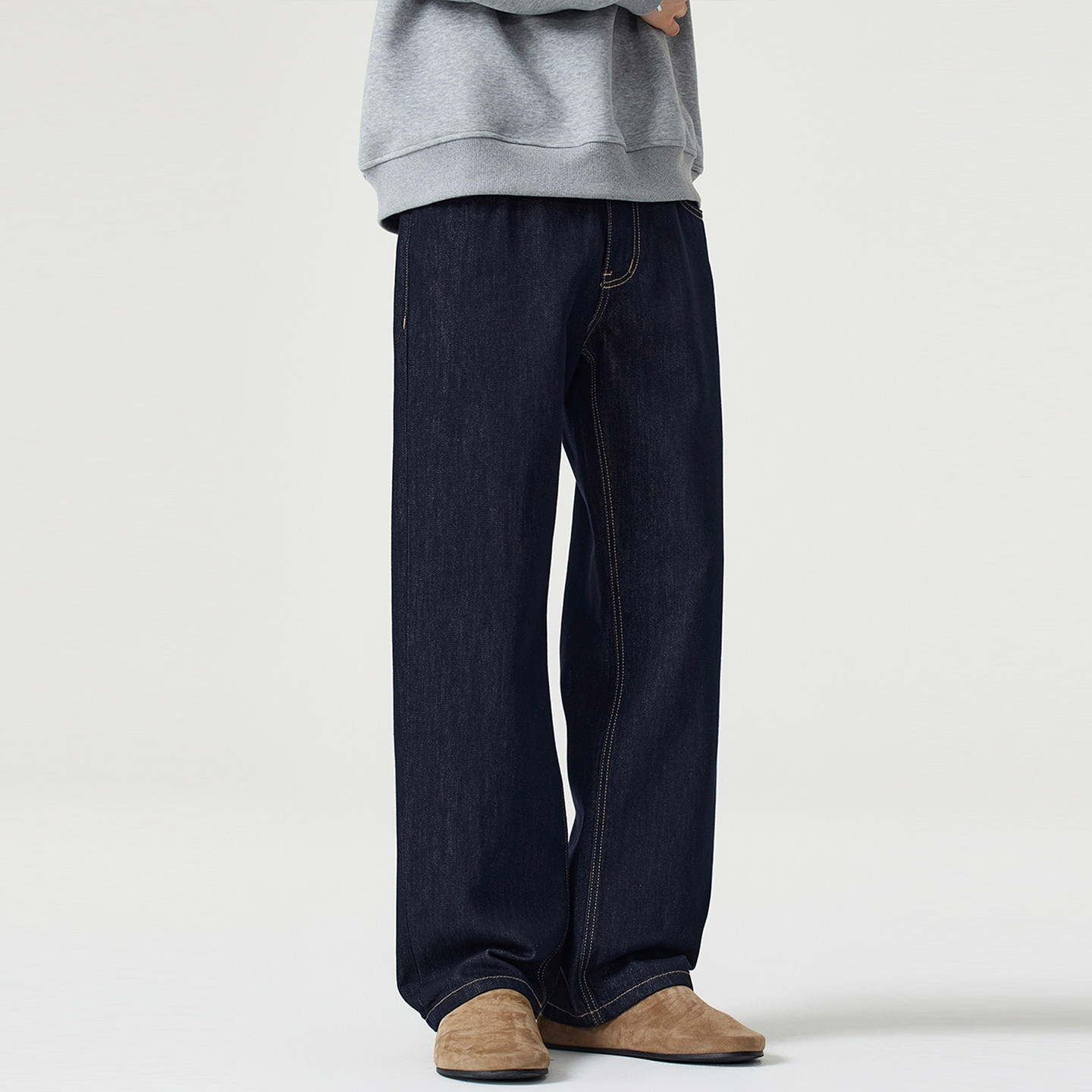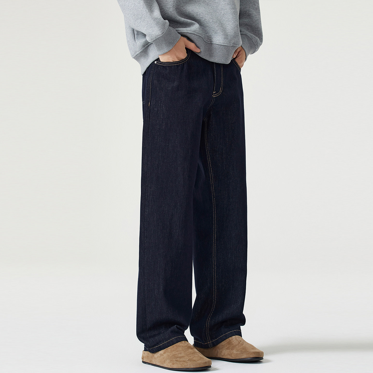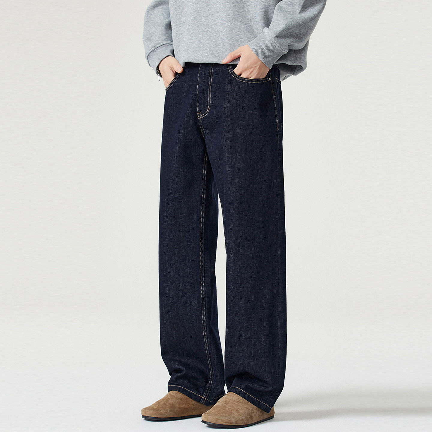 📚 NO LOGO原色牛仔裤男秋冬季宽松直筒美式复古cleanfit阔腿裤加绒