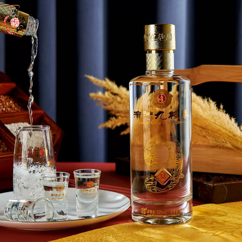 📚 甘肃名酒滨河九粮春53度500ml浓香型纯粮高度白酒礼盒装送礼婚宴