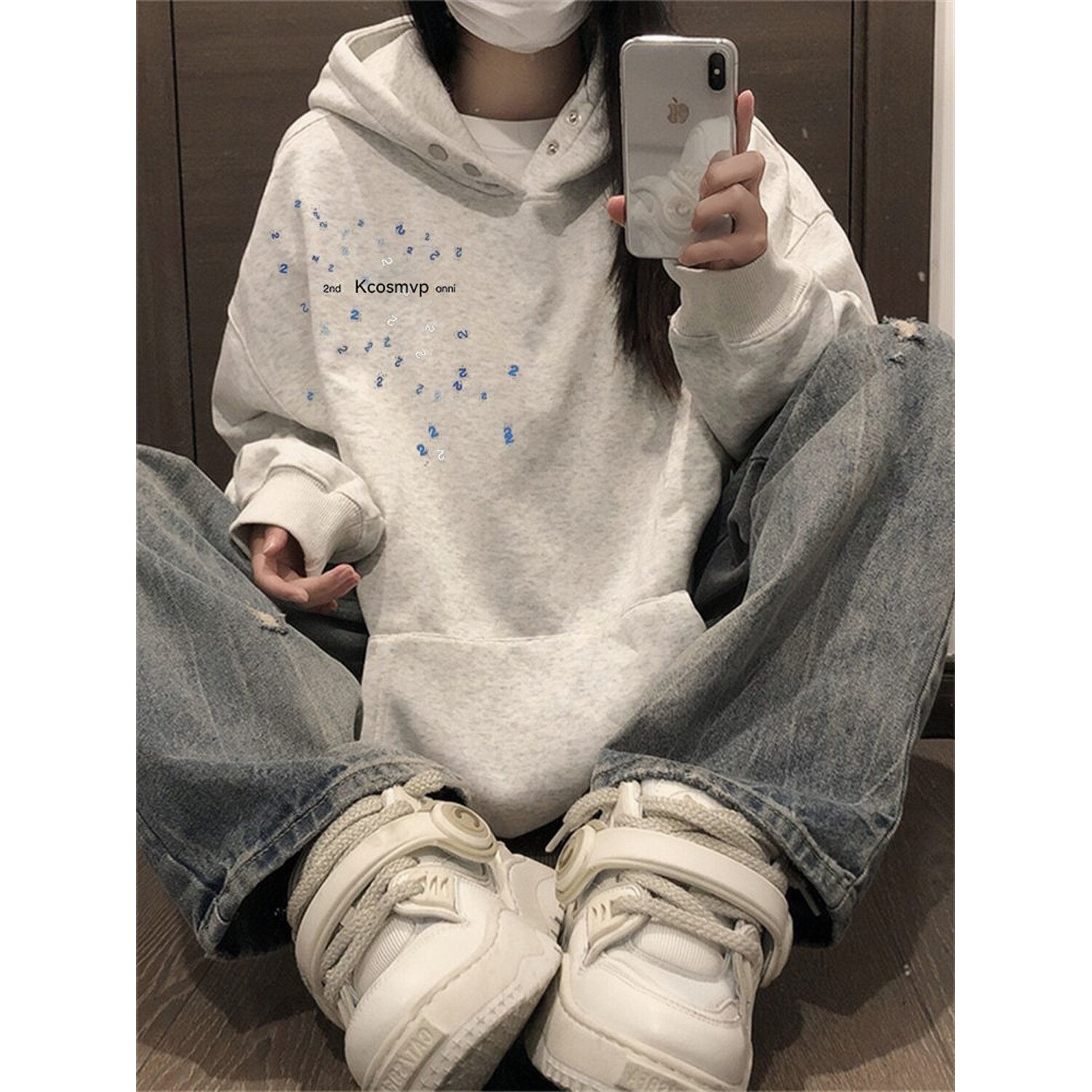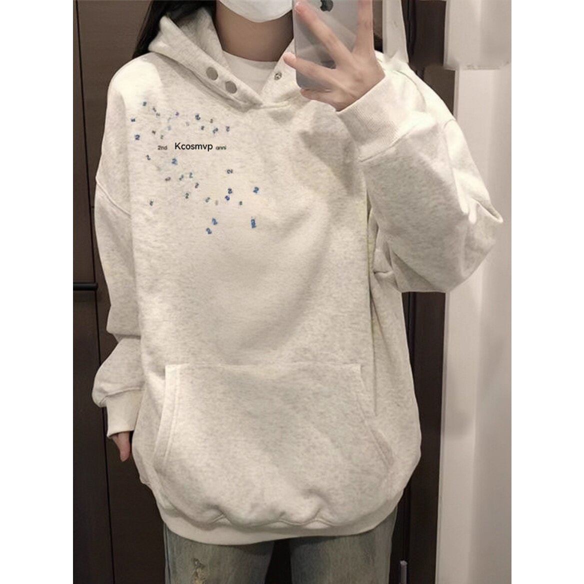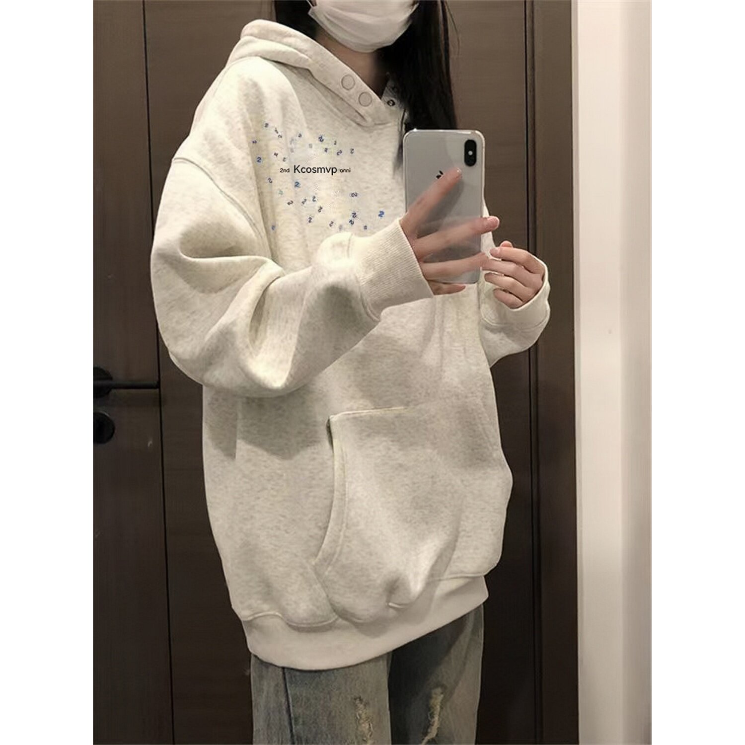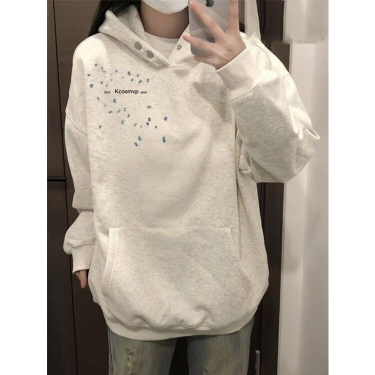 📚 美式高街纯棉白灰色连帽卫衣女大童秋冬爆款初中学生宽松加绒外套