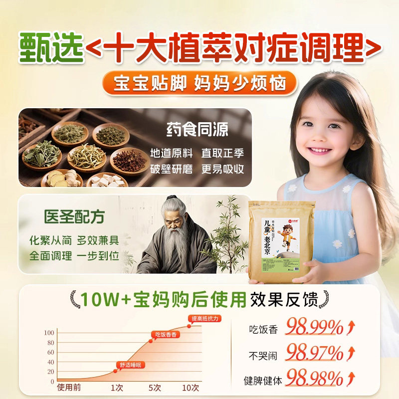📚 老北京儿童足贴生姜艾草调理脾胃鼻堵宝宝体质脚底涌泉成长穴位贴
