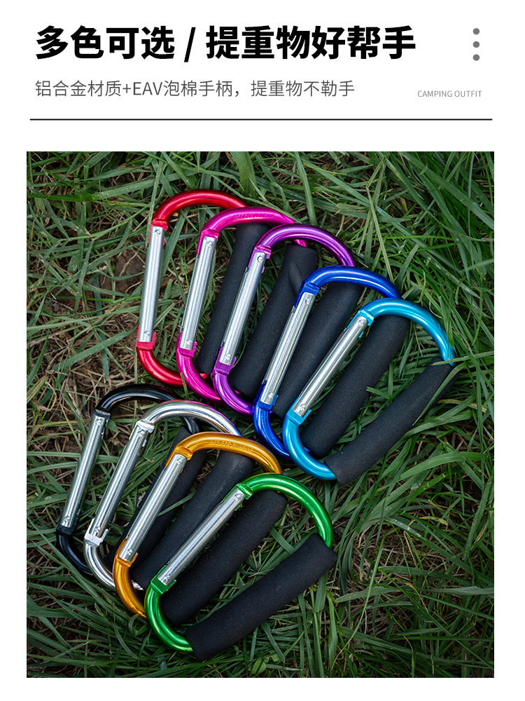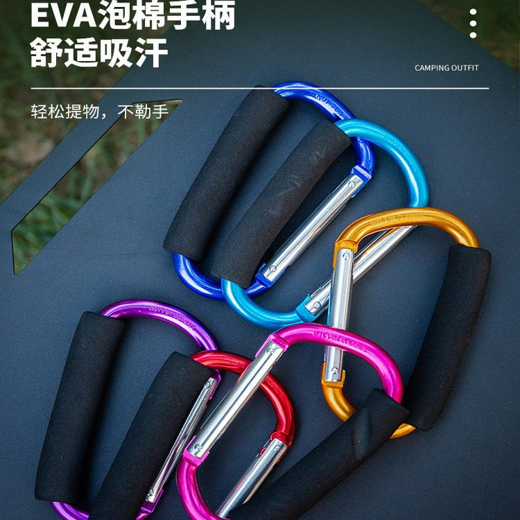 📚 户外登山野营登山扣大型铝合金钥匙扣背包大号D型扣海绵把手挂鞋