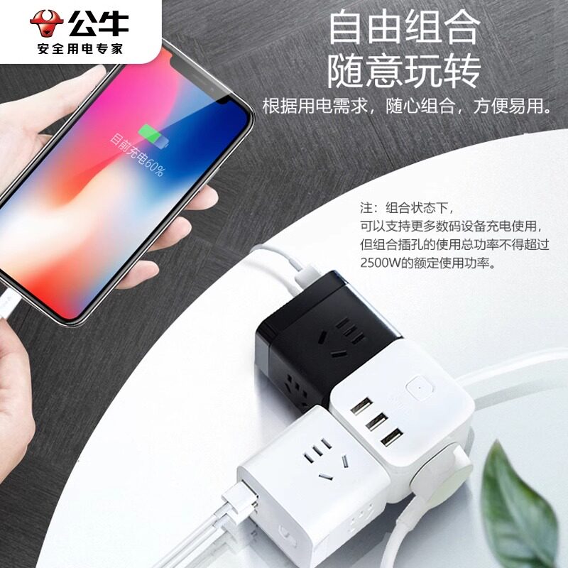 📚 公牛小魔方插座USB正品ubs接口插座usp插座多口快充带充电器排插