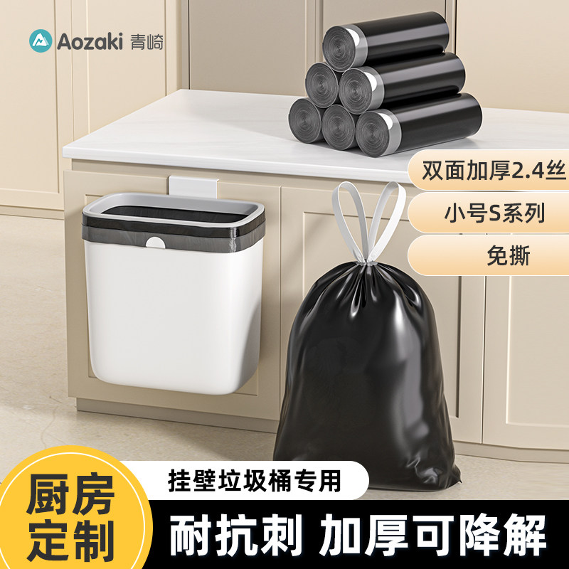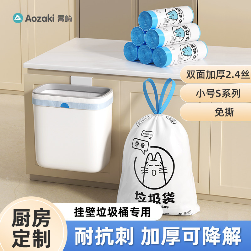 📚 日本可降解拉抽绳垃圾袋家用加厚手提式厨房专用小号环保清洁袋