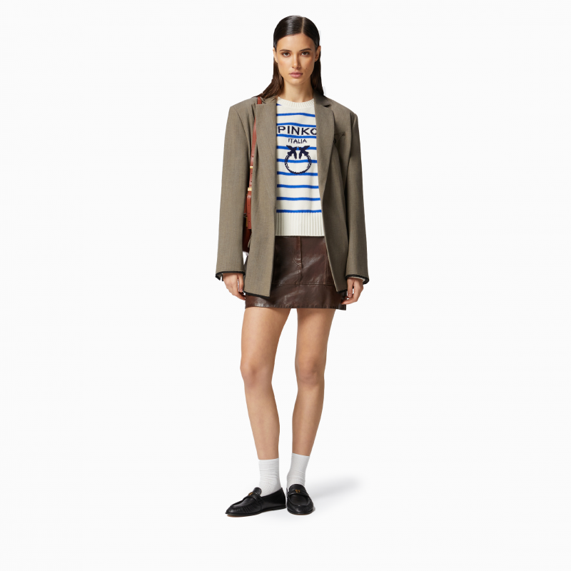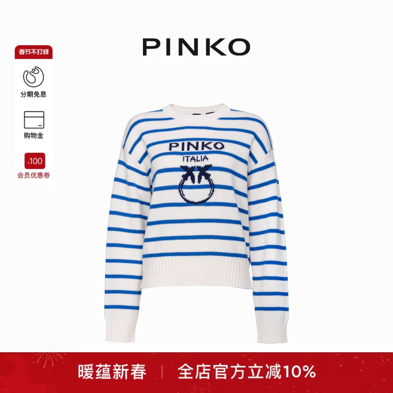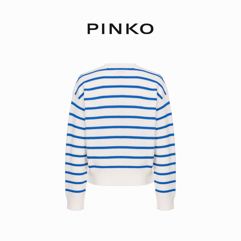 📚 PINKO2025女士飞鸟标提花条纹圆领针织104679A2EV