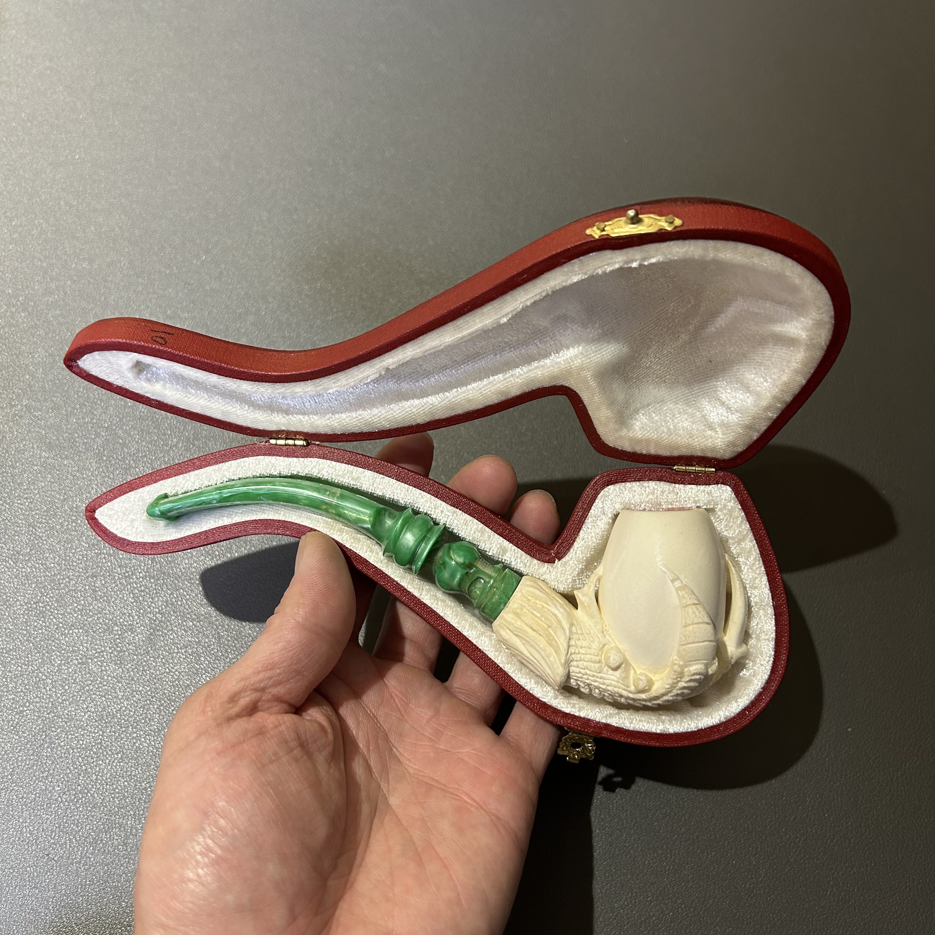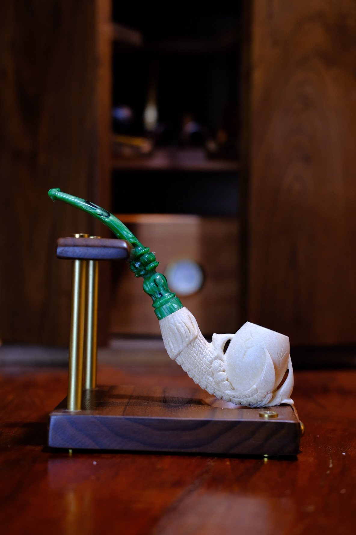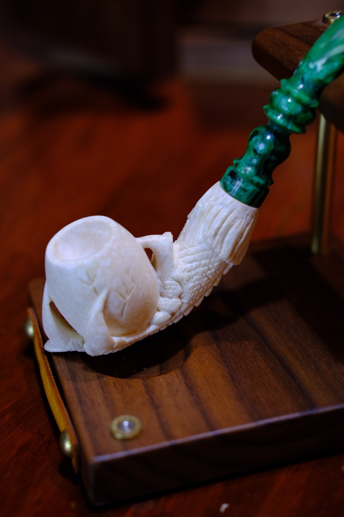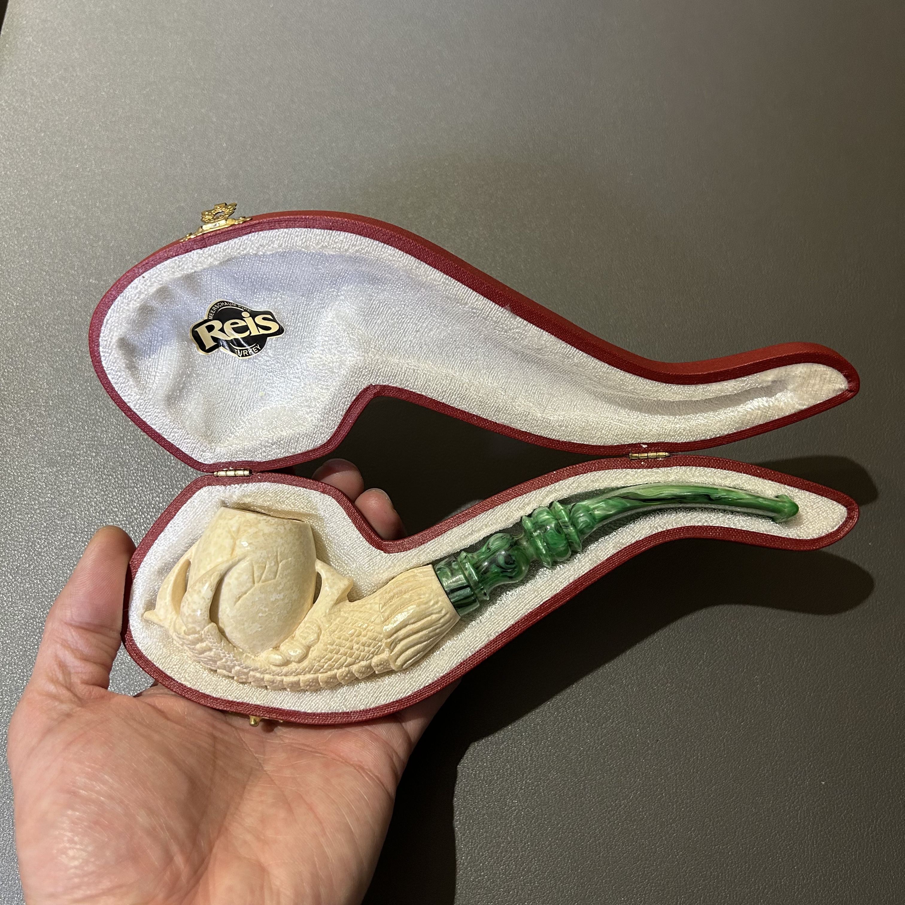 📚 土耳其Reis海泡石原石烟斗 中号斗加长杆龙爪蛋雕刻斗