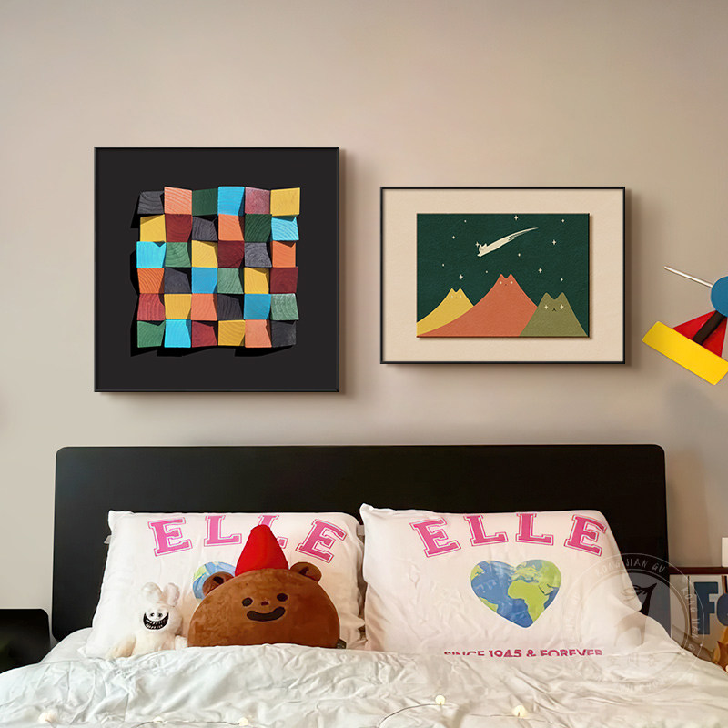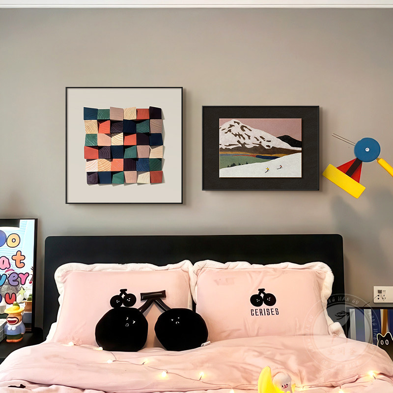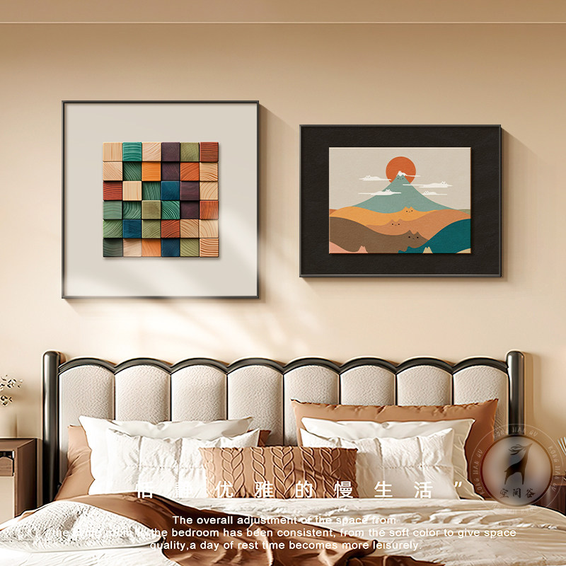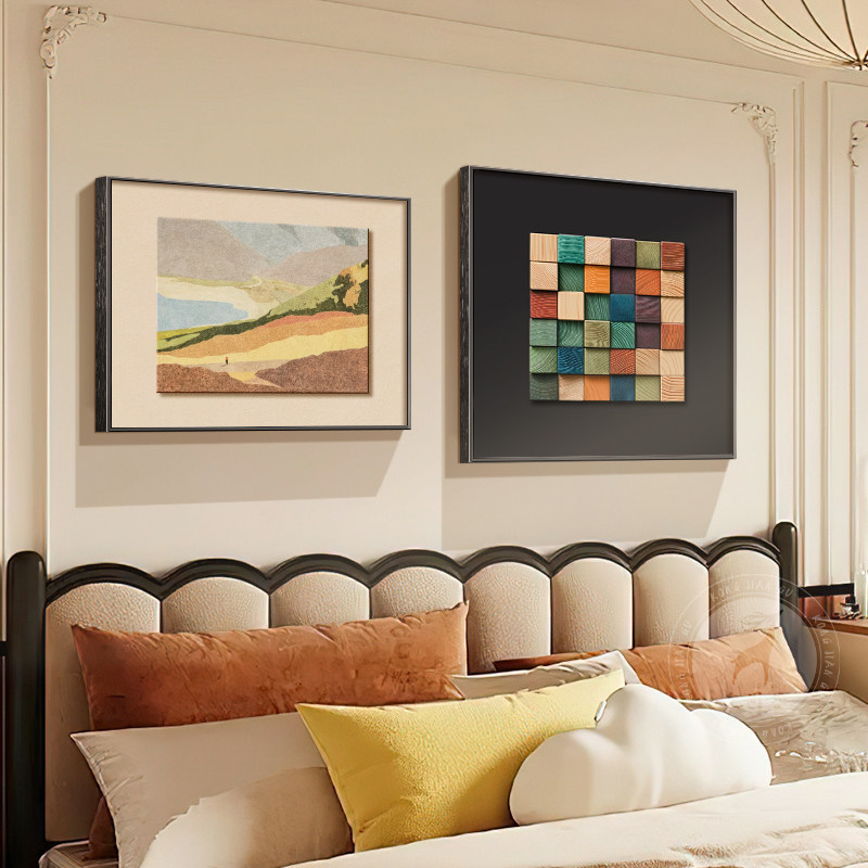 📚 多巴胺中古风卧室床头装饰画意式极简组合壁画法式复古主卧房挂画