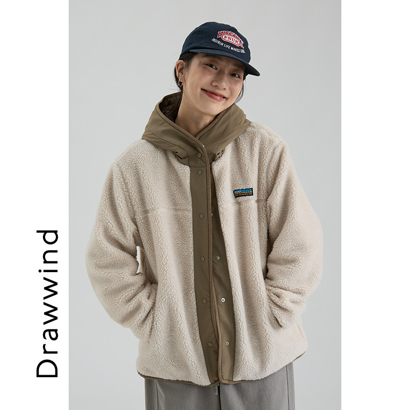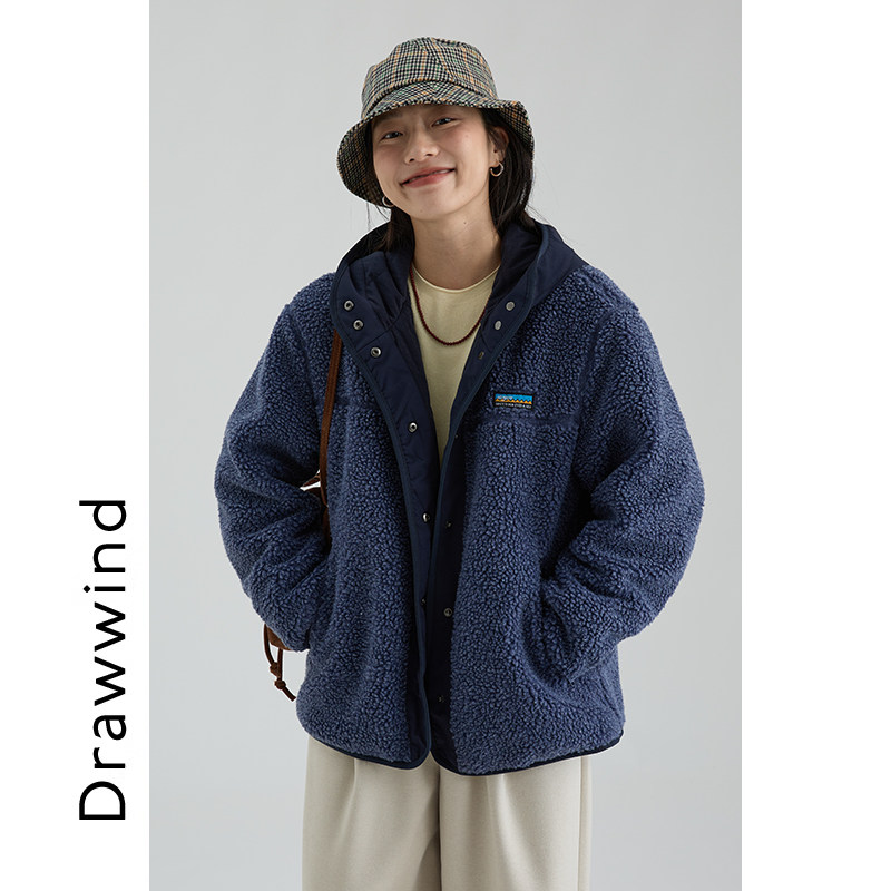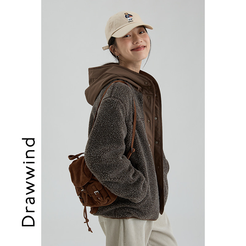 📚 画风drawwind2025秋冬新款连帽摇粒绒外套女宽松纯色休闲保暖上衣