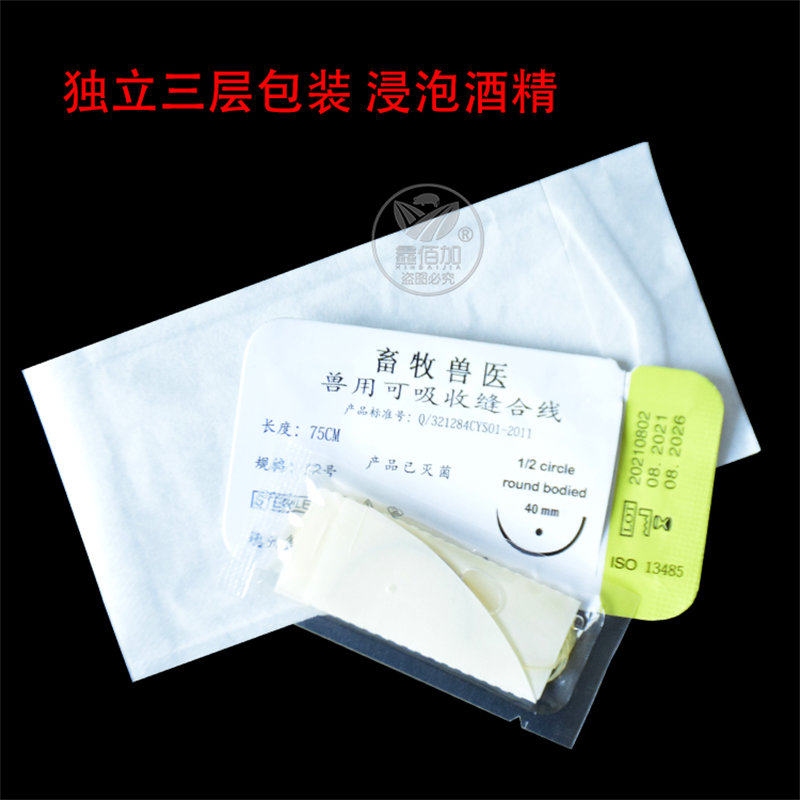 📚 兽用可吸收缝合线 动物手术缝合针 免拆可吸收羊肠线猪牛羊马用