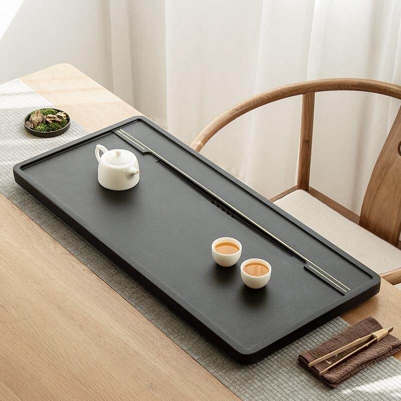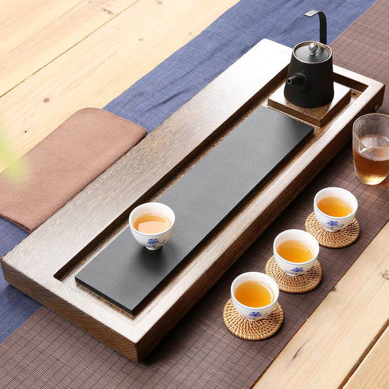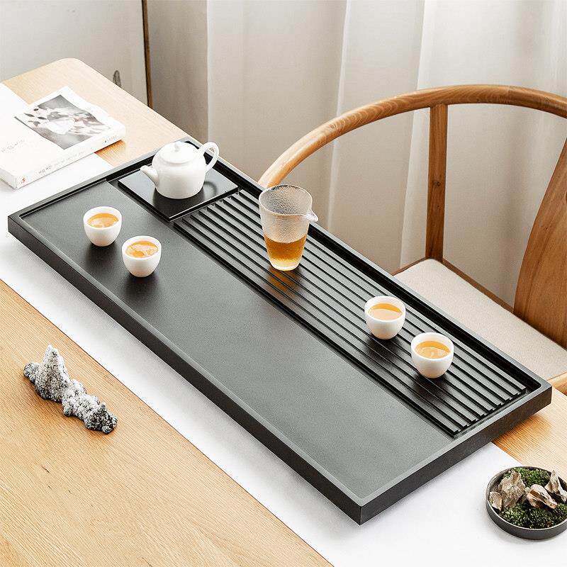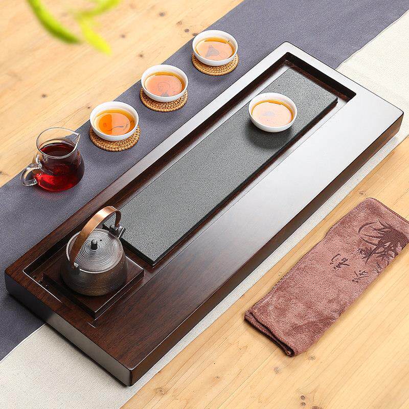 📚 整块黑檀木乌金石茶盘实木茶台茶托功夫茶具茶海石制排水家用茶盘