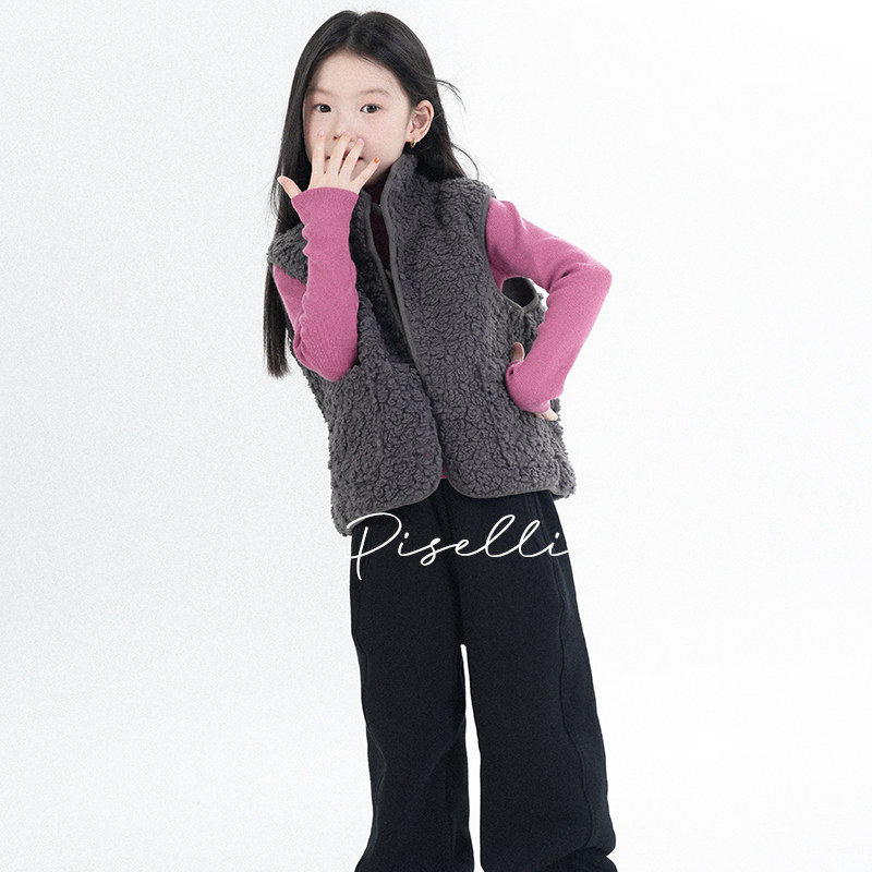 📚 PISELLI史豌豆女童纯色卫裤2025冬季新款儿童加厚加绒休闲收口裤