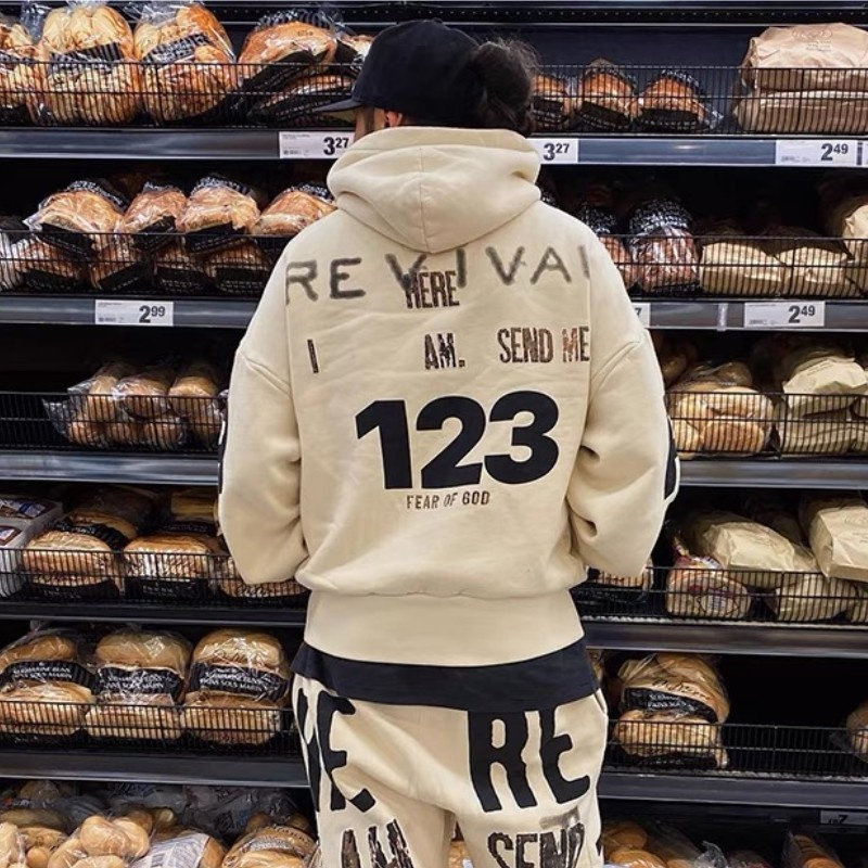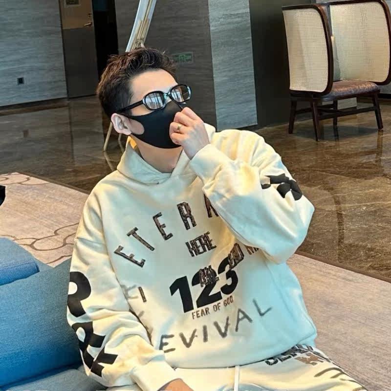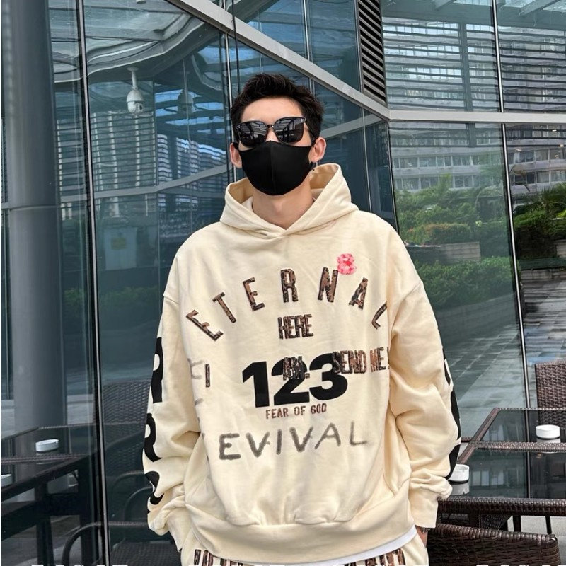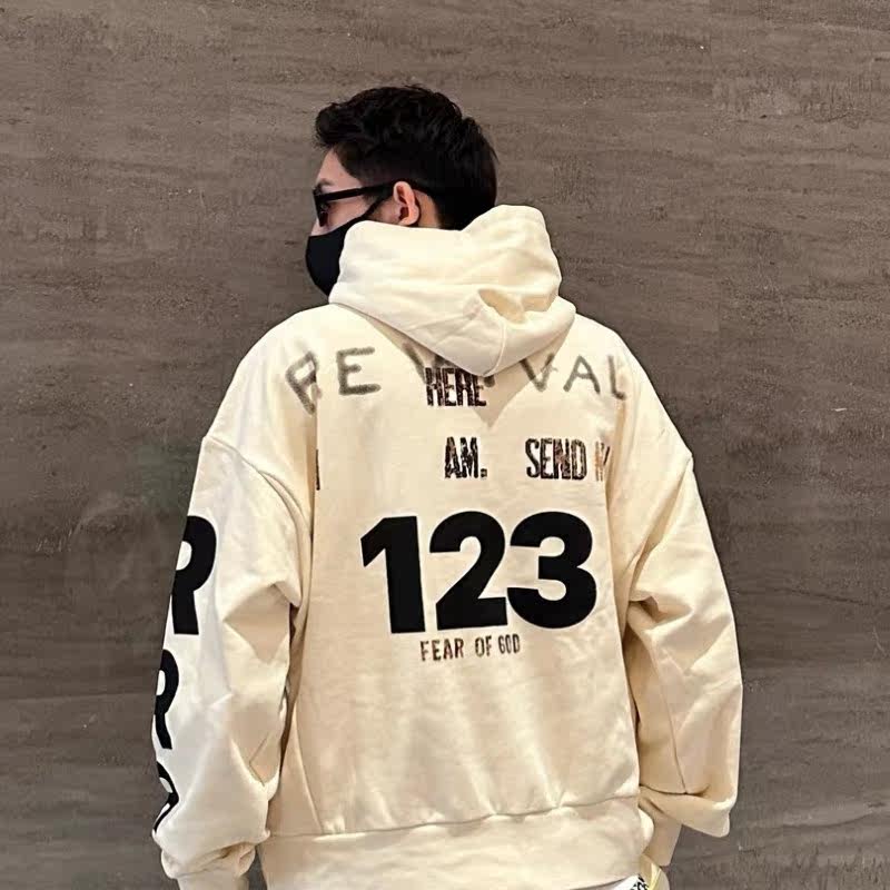📚 FOG x RRR123联名重磅字母水洗做旧涂鸦加绒宽松男士连帽卫衣帽衫