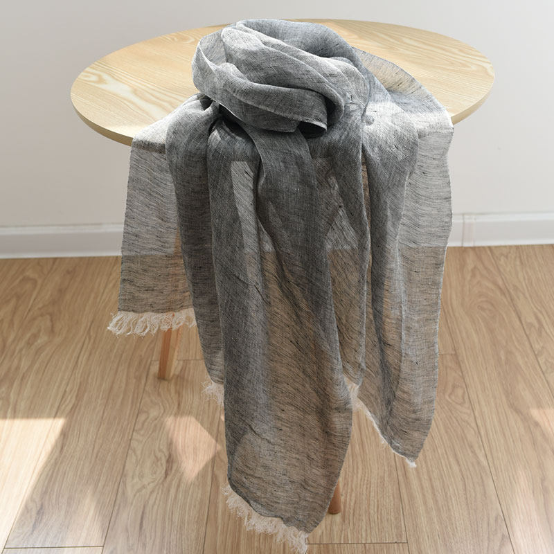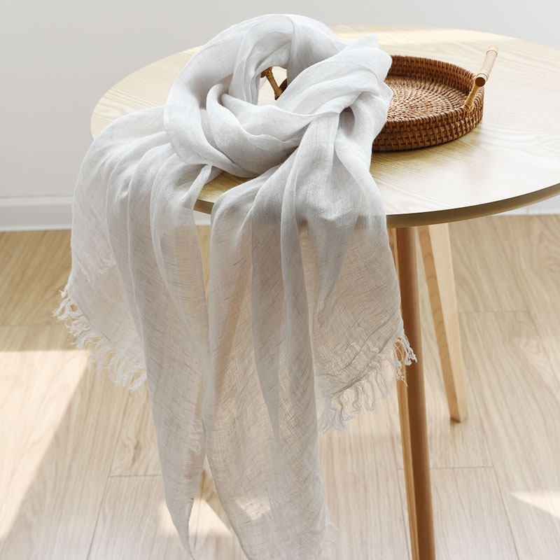 📚 出口日本原单纯麻麻灰效果亚麻防晒防紫外线围巾纯色素雅男女披肩