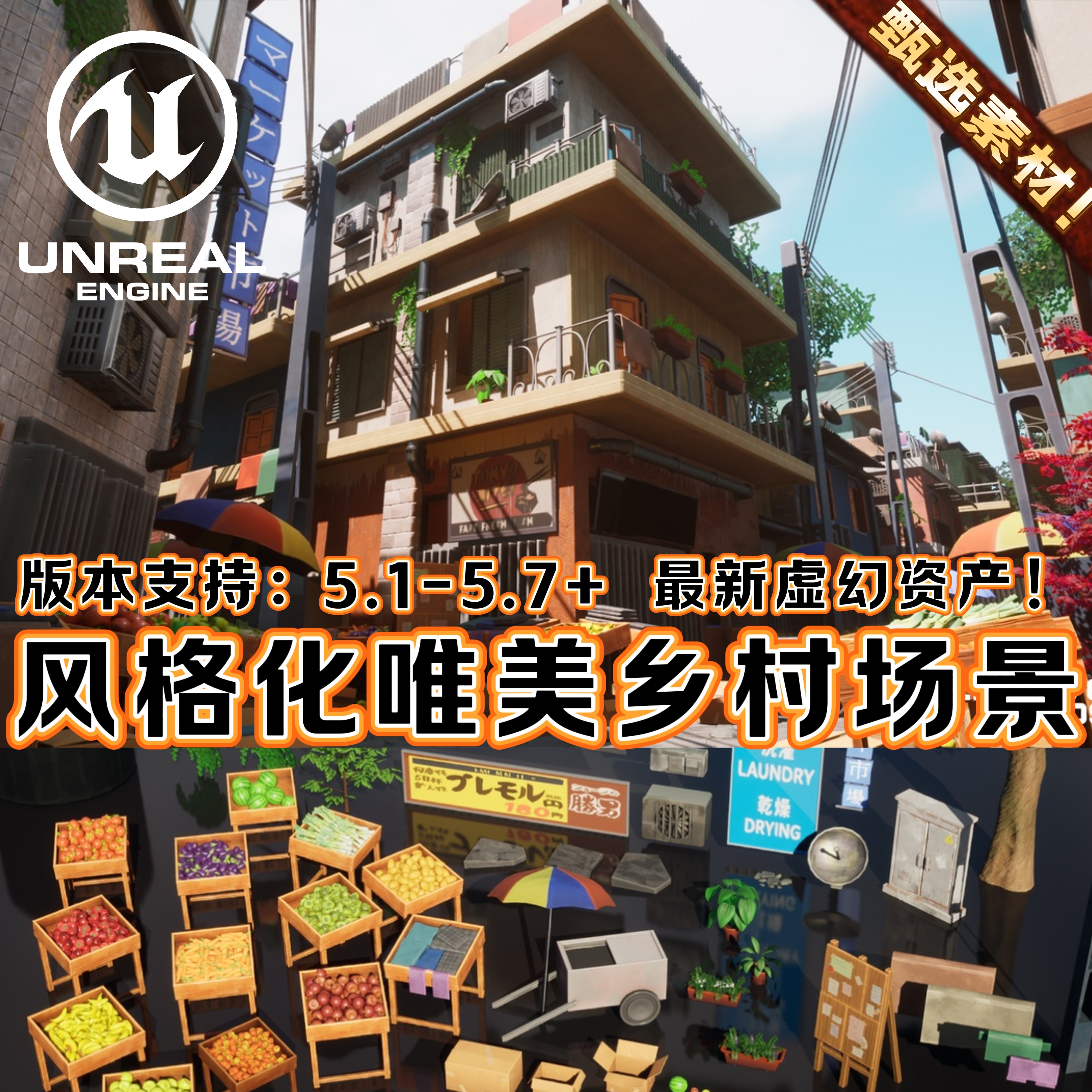 📚 UE5虚幻5场景卡通风格化吉卜力唯美乡村日本城市环境街道建筑集市