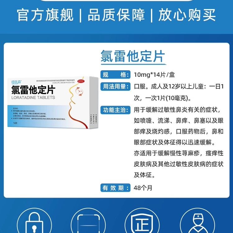 📚 氯雷他定片荨麻疹过敏性鼻炎专用止痒药地录雷定他定过敏药