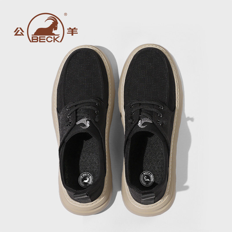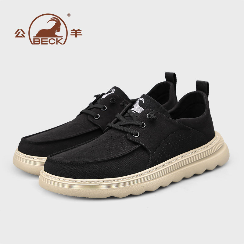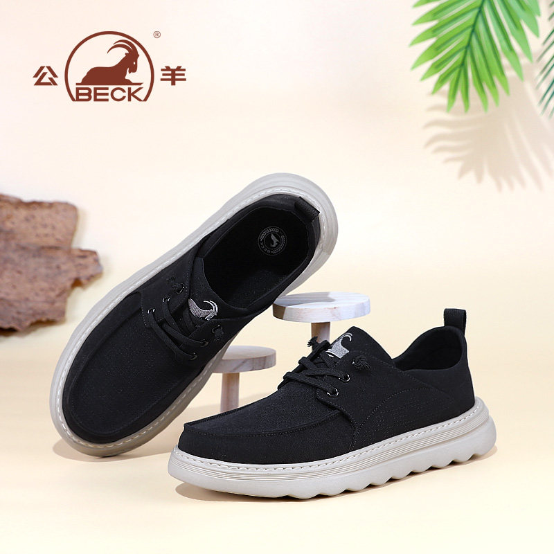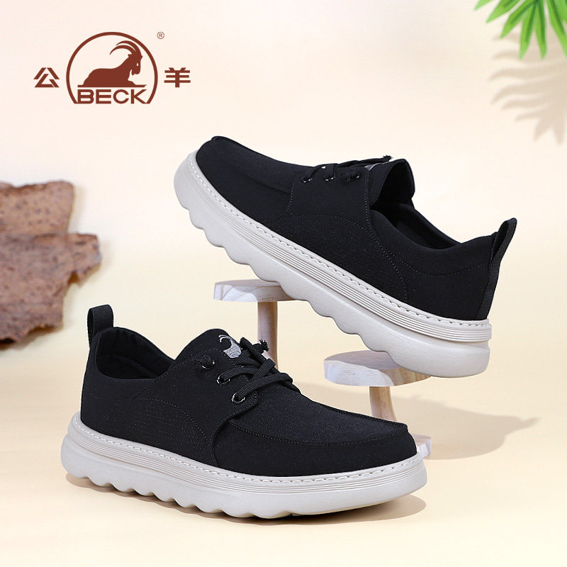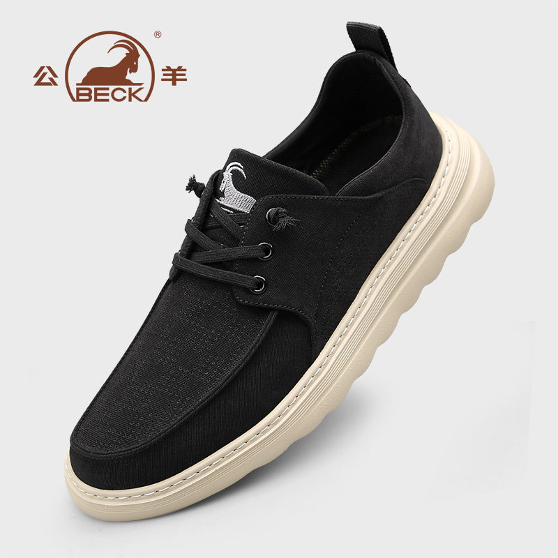 📚 公羊男鞋2025春秋季新款透气黑色帆布鞋百搭厚底休闲一脚蹬鞋子男