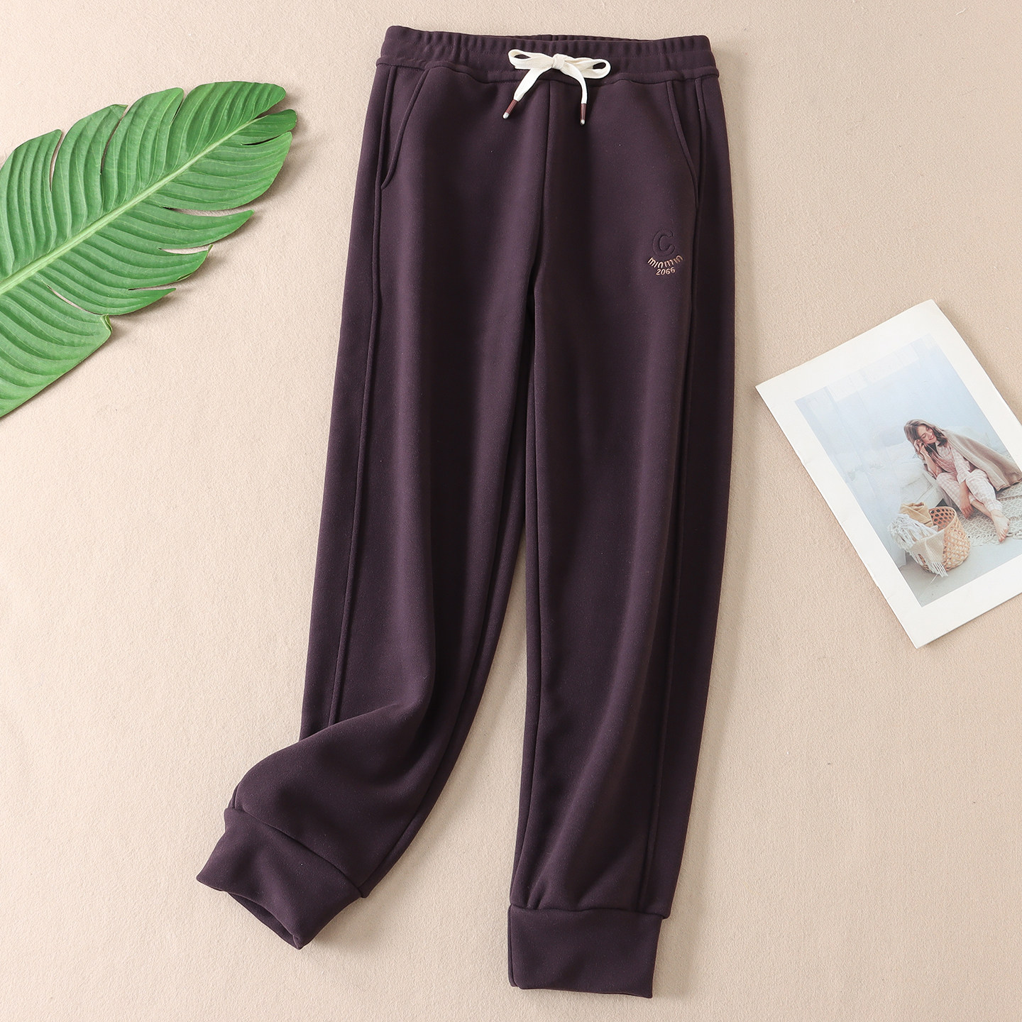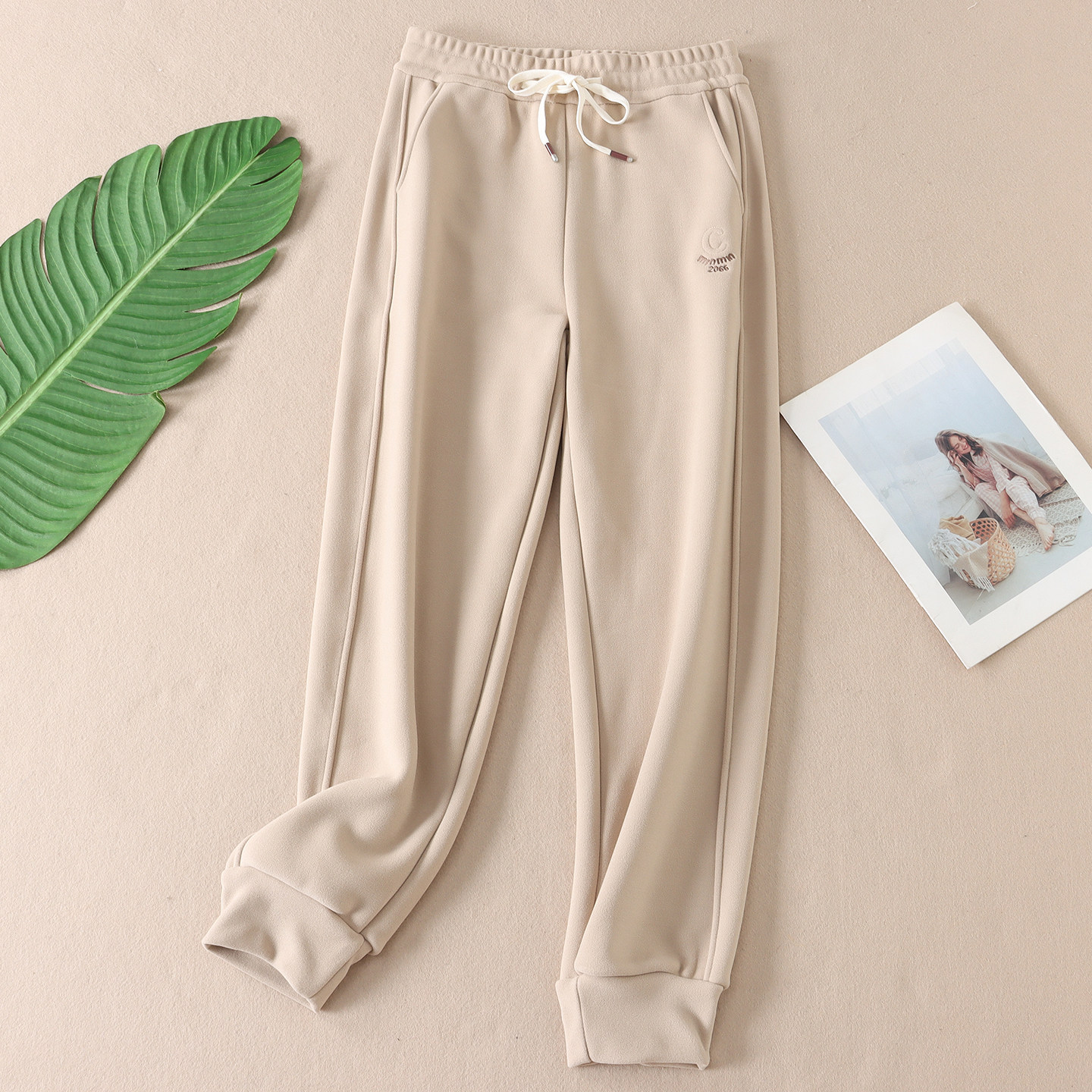 📚 630克 加厚绒束脚防风卫裤女不起球保暖显瘦刺绣休闲运动长裤B165