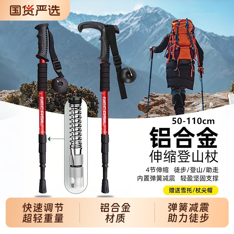 📚 户外登山杖手杖铝合金碳素轻便伸缩折叠爬山拐棍男女款户外徒步