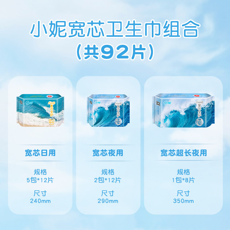 📚 小妮新国标宽芯丝薄护翼卫生巾前后加宽久坐防前漏保持干爽92片