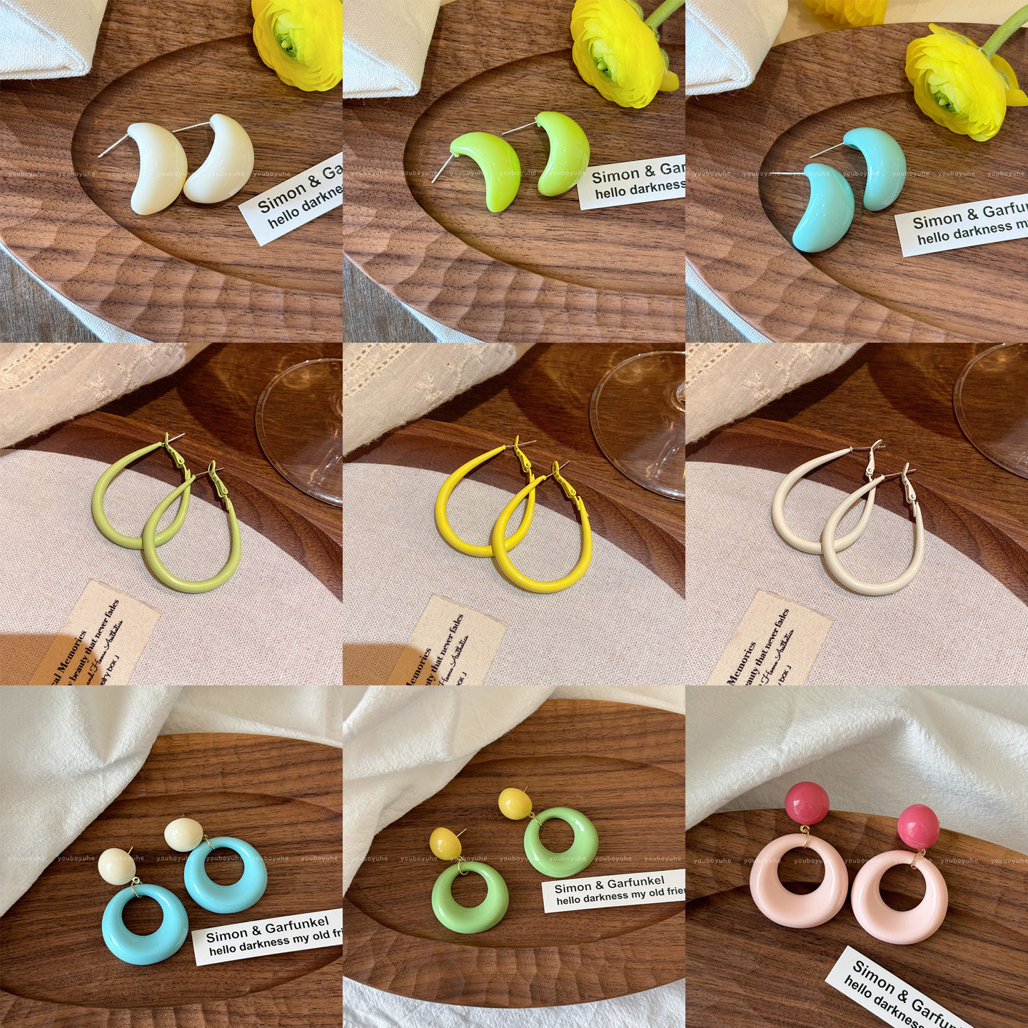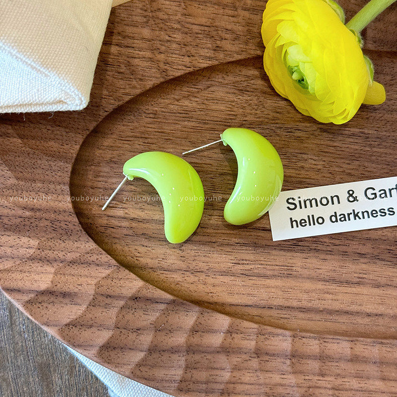 📚 多巴胺夏季耳环小清新糖果弧形耳钉度假风海边豆豆耳饰马卡龙耳圈