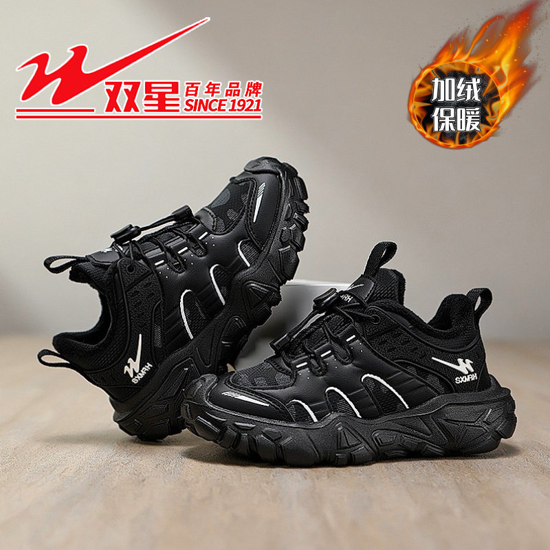 🔥种草!双星男童二棉鞋2025秋冬新款皮面防水黑色运动鞋,冬季温暖新选择👟