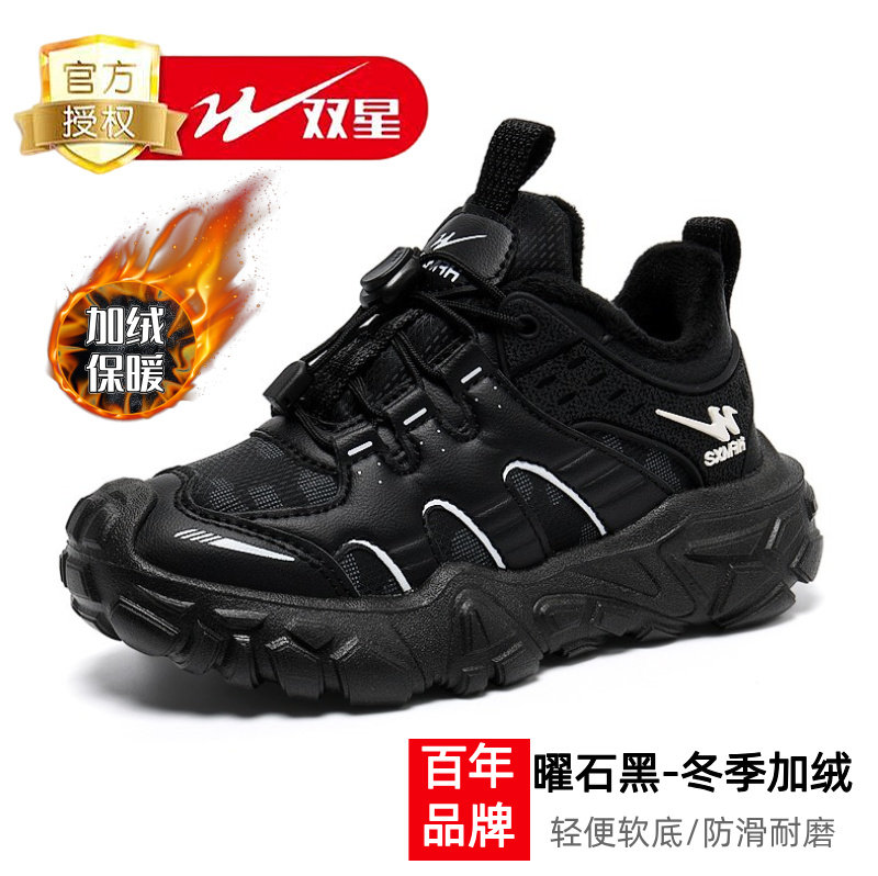 #双星男童鞋 #秋冬新款 #皮面防水 #黑色运动鞋 #冬季保暖好物