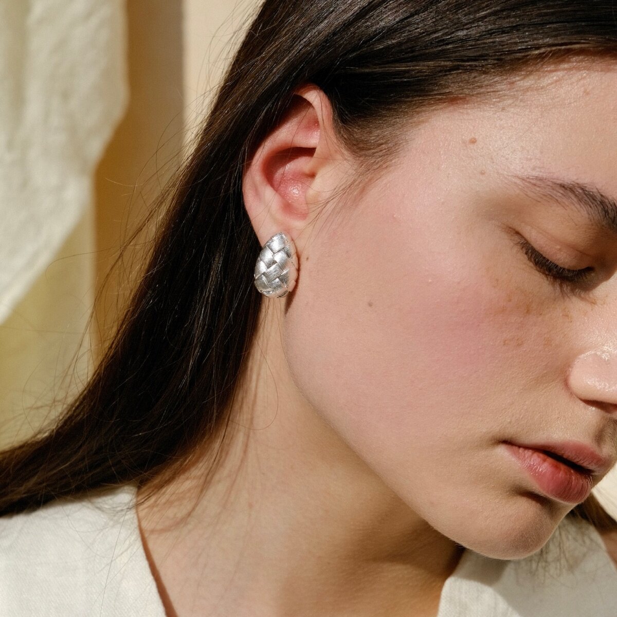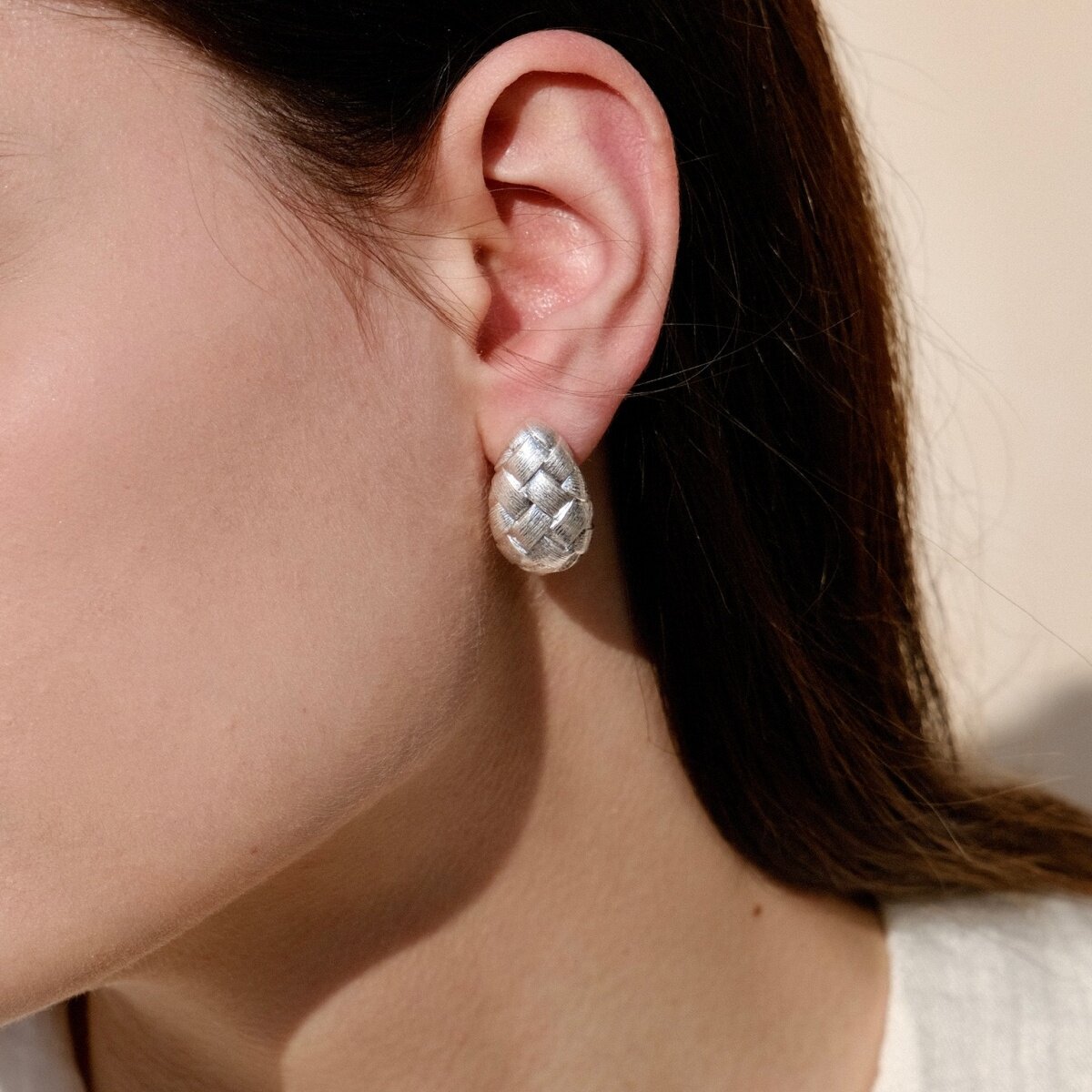 📚 CLOSENSE『茧』原创设计编织C圈耳饰 简约设计秋冬镀银耳钉耳夹