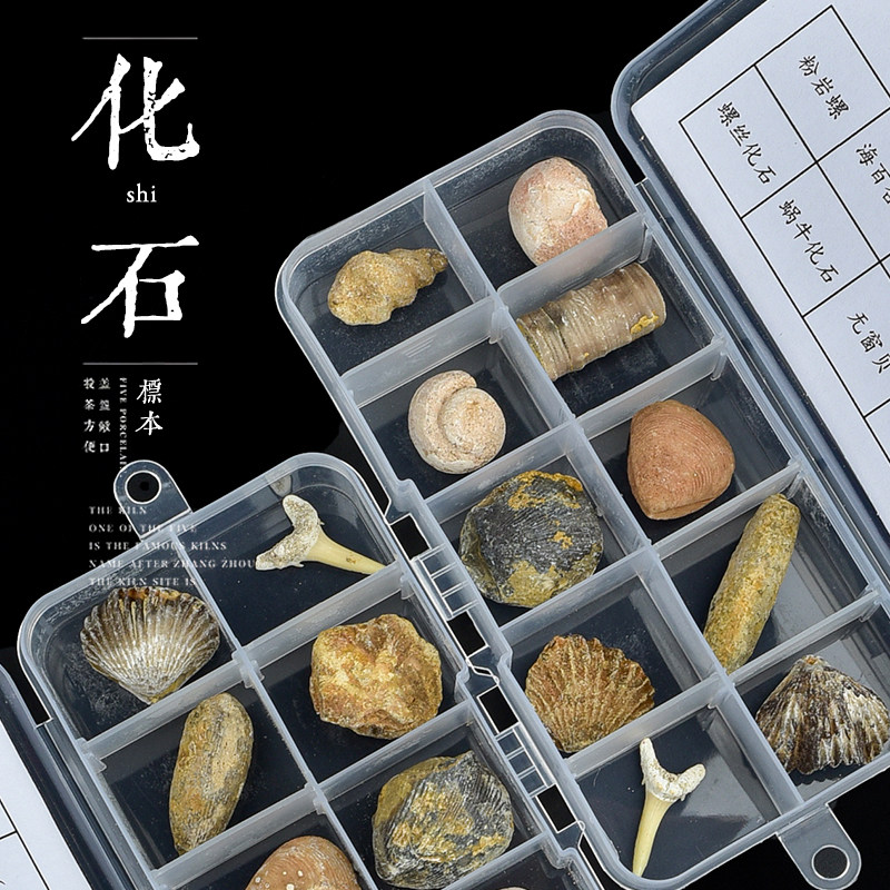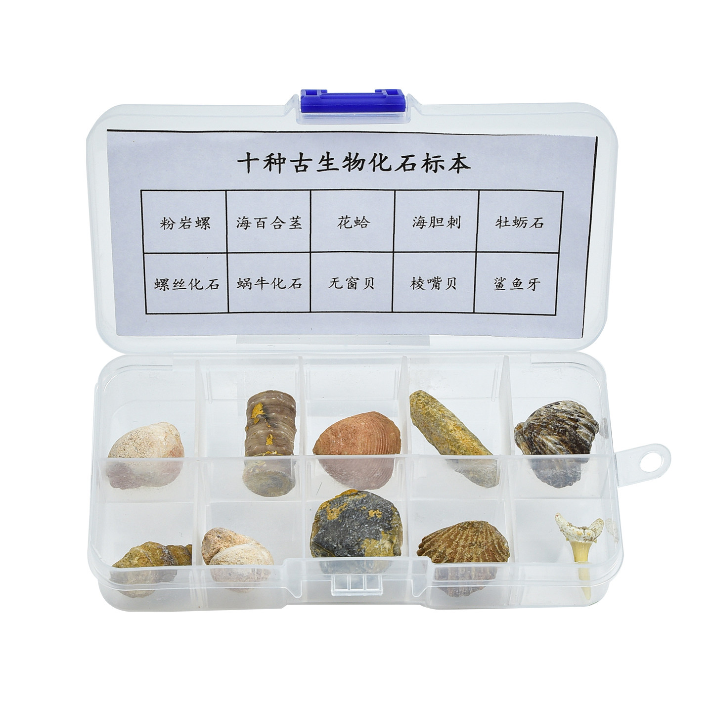 📚 10种天然古生物化石昆虫海螺三叶虫海洋动菊石标本盒科普教学现货