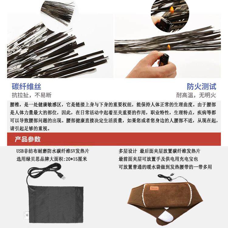 📚 5V碳纤维丝加长加厚电加热带暖腰暖胃暖宫加热护腰加热USB