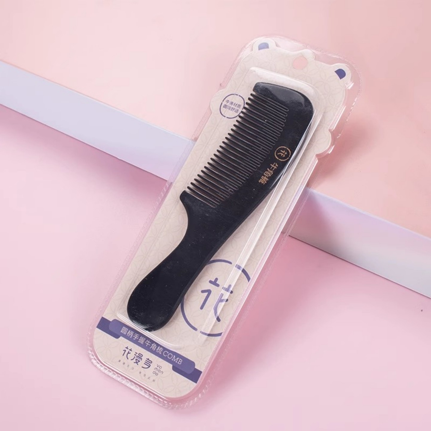 📚 花漫多0272梳子圆柄手握牛角梳家用美发梳便携有质感随身梳刘海梳
