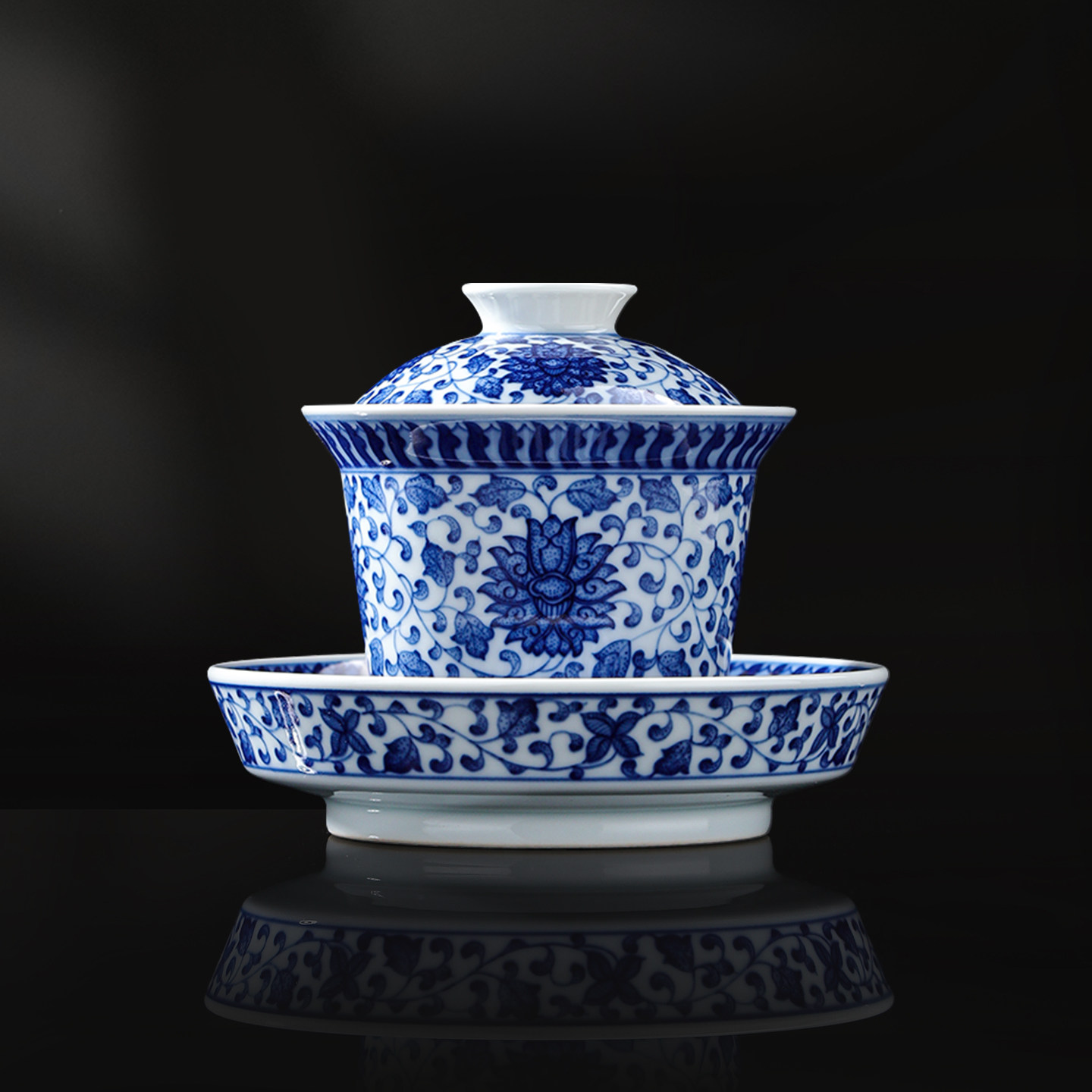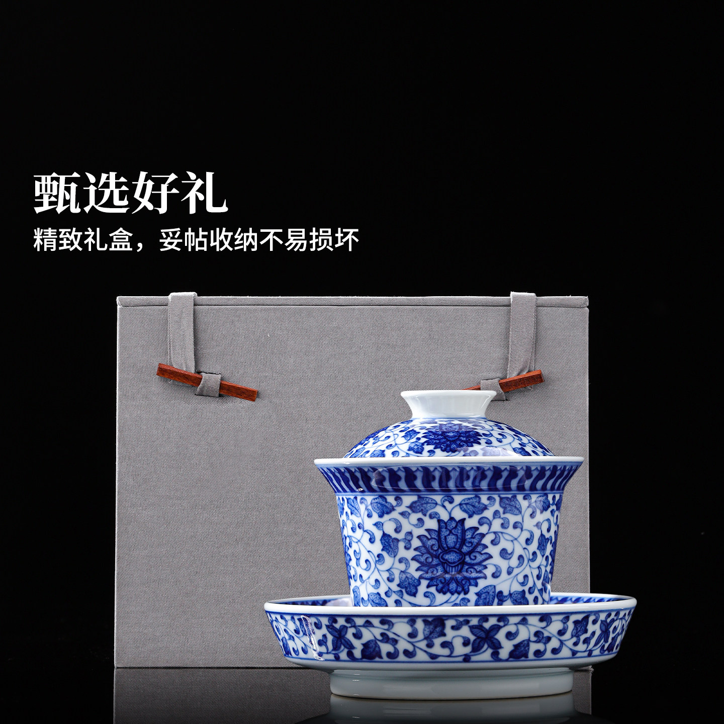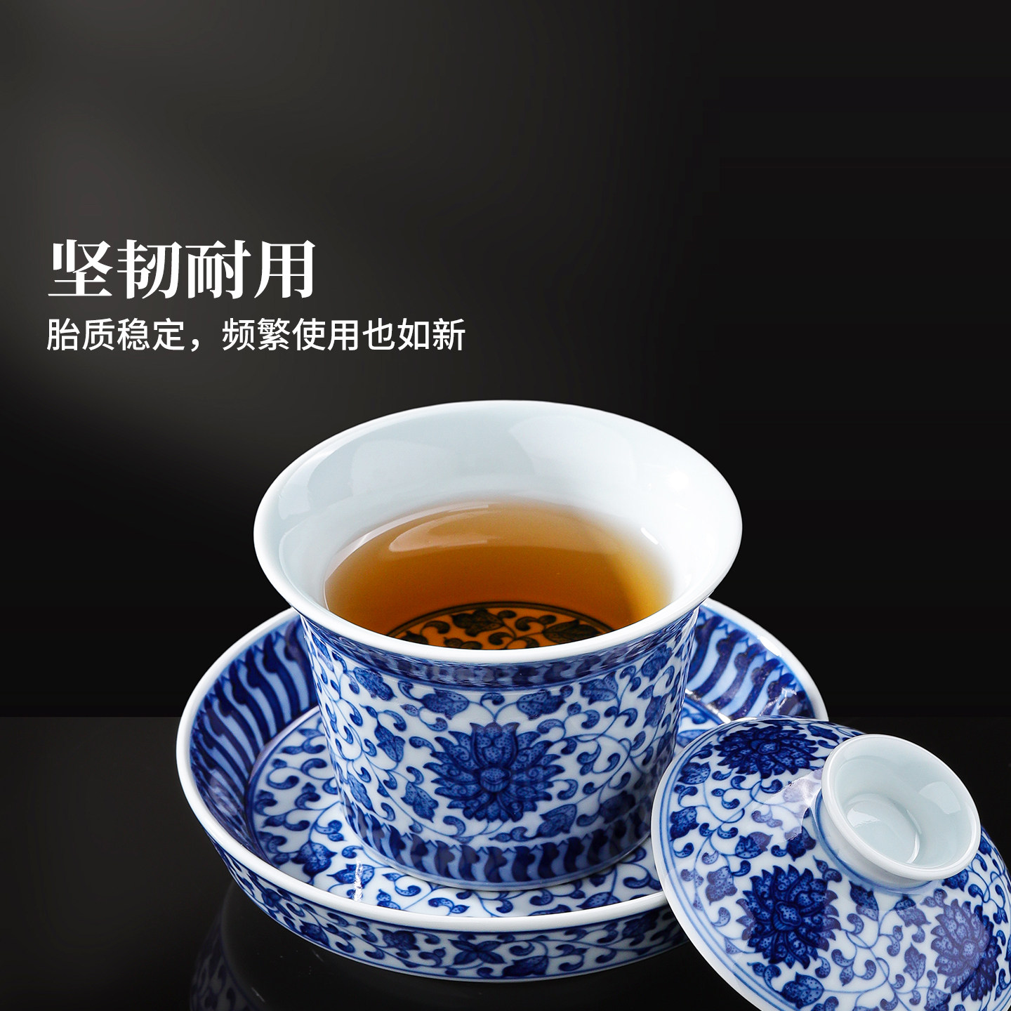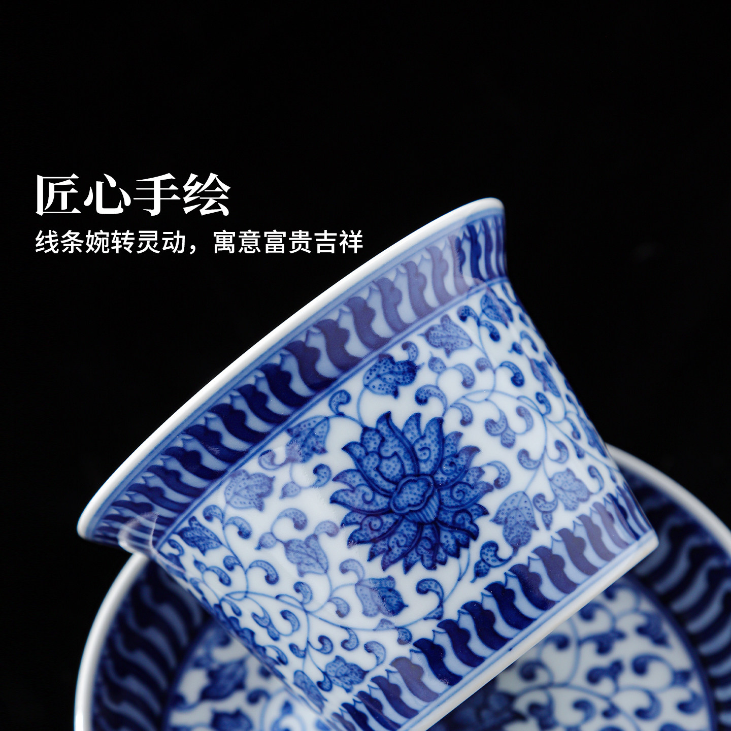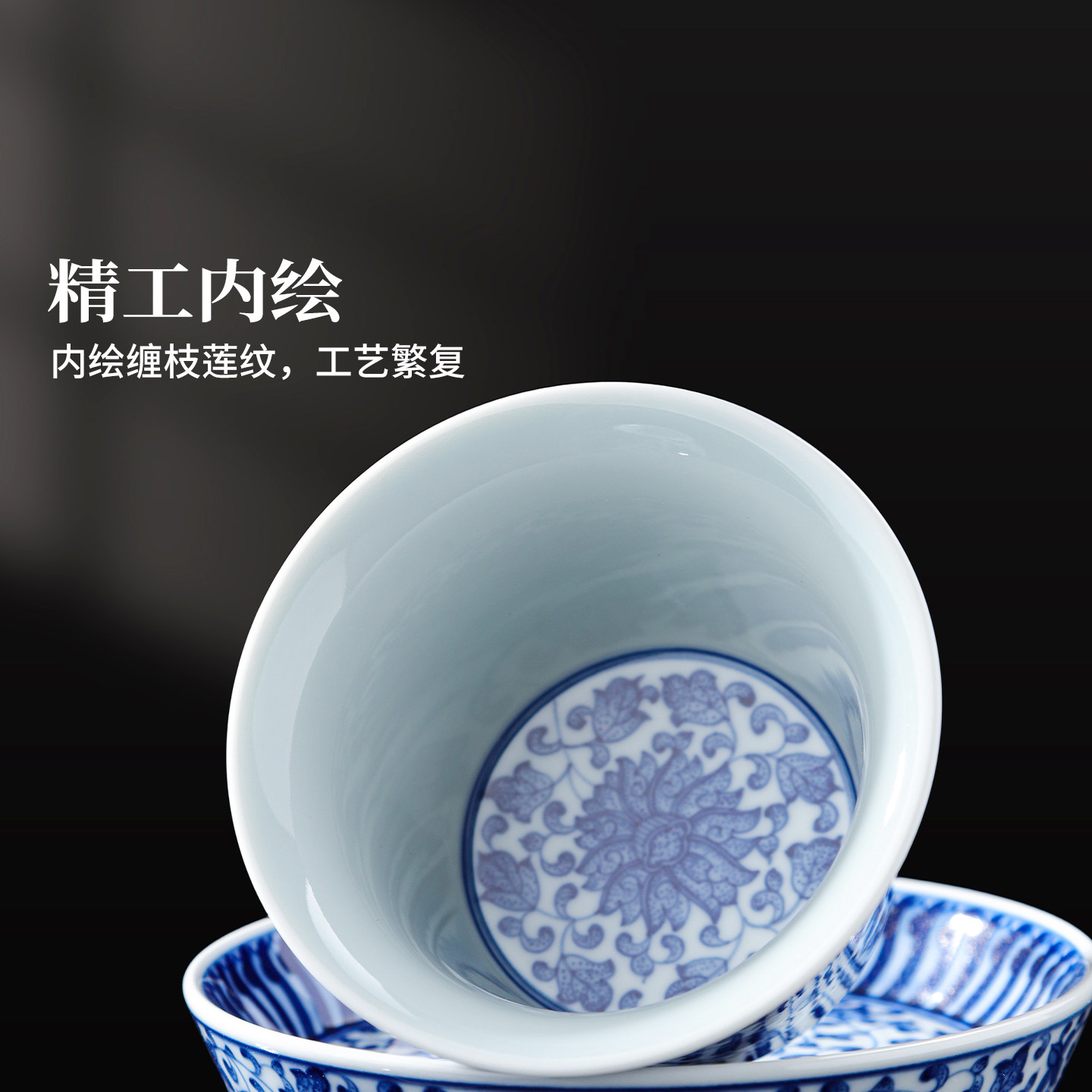 📚 景德镇官方陶瓷釉下三才盖碗主人杯青花茶杯功夫茶具个人专用品茗
