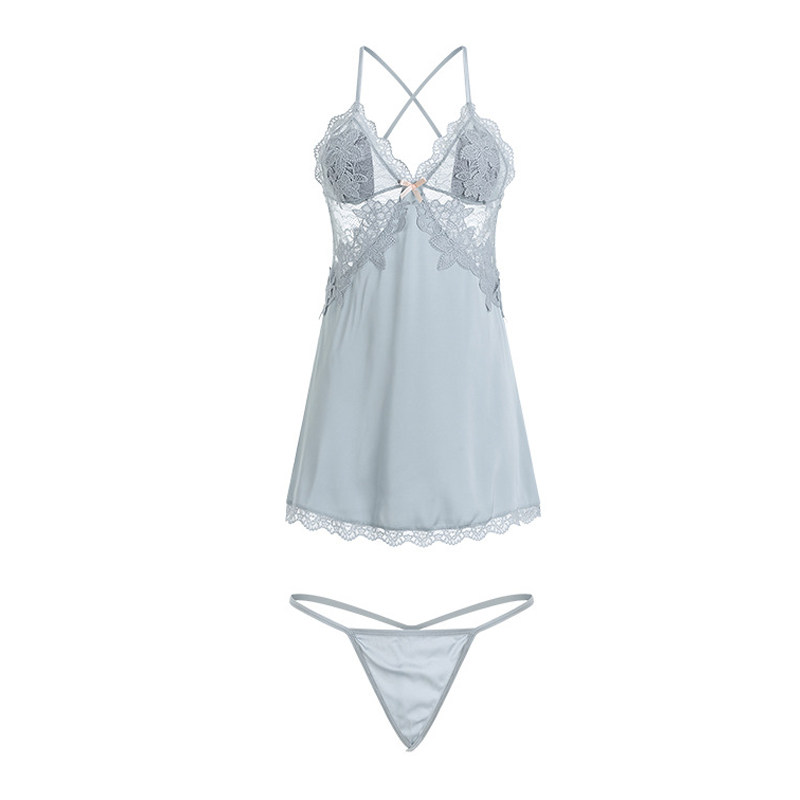 📚 缎面性感睡衣睡裙带胸垫冰丝聚拢深V吊带性感系带睡袍纯欲风蕾丝