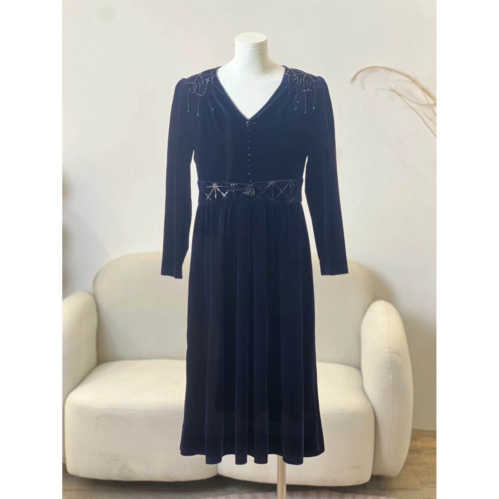 📚 女装秋季气质裙子流苏V领长袖宽松丝绒时尚连衣裙GQW67941