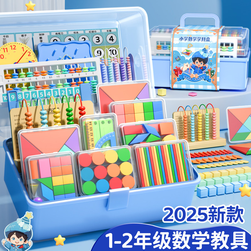📚 得力一年级数学教具全套二三四计数器钟表分数小学教具几何图形