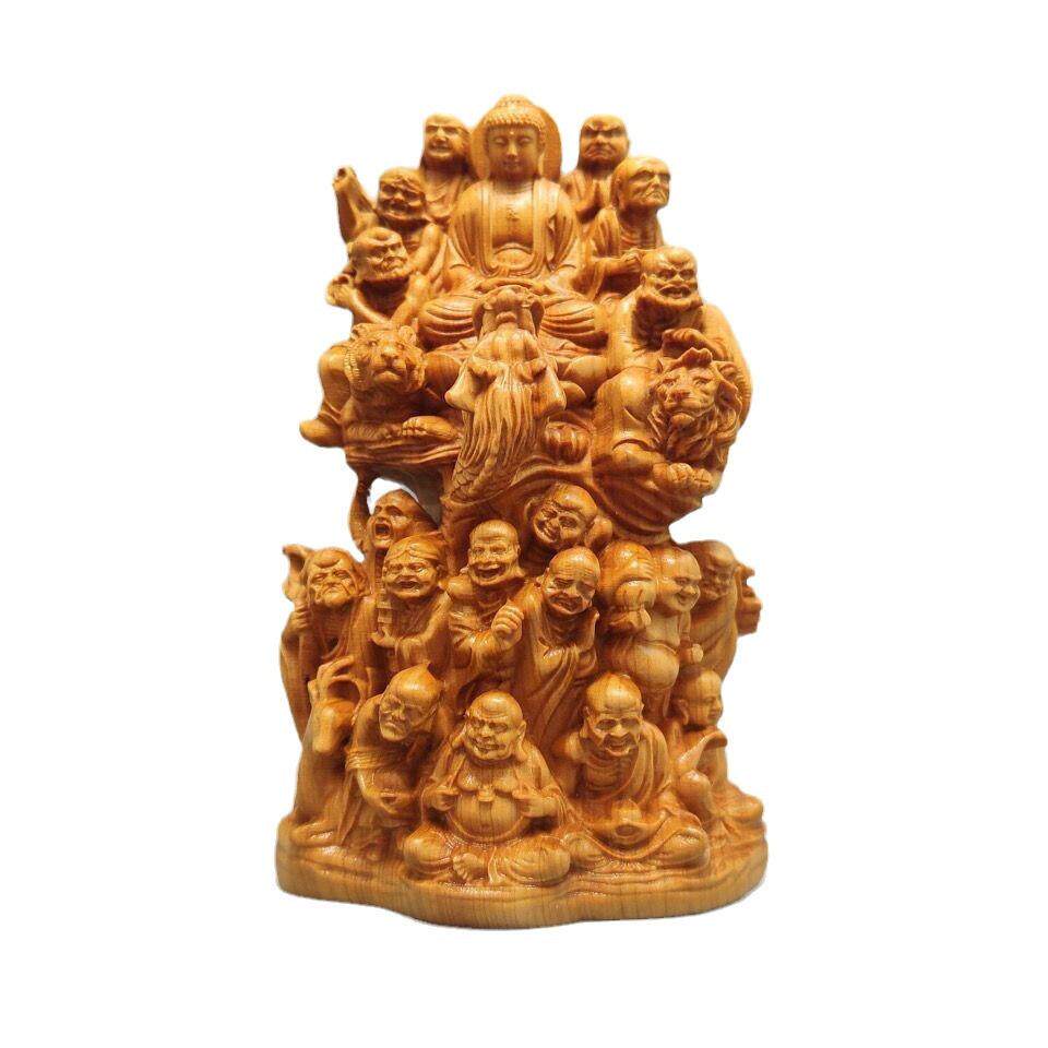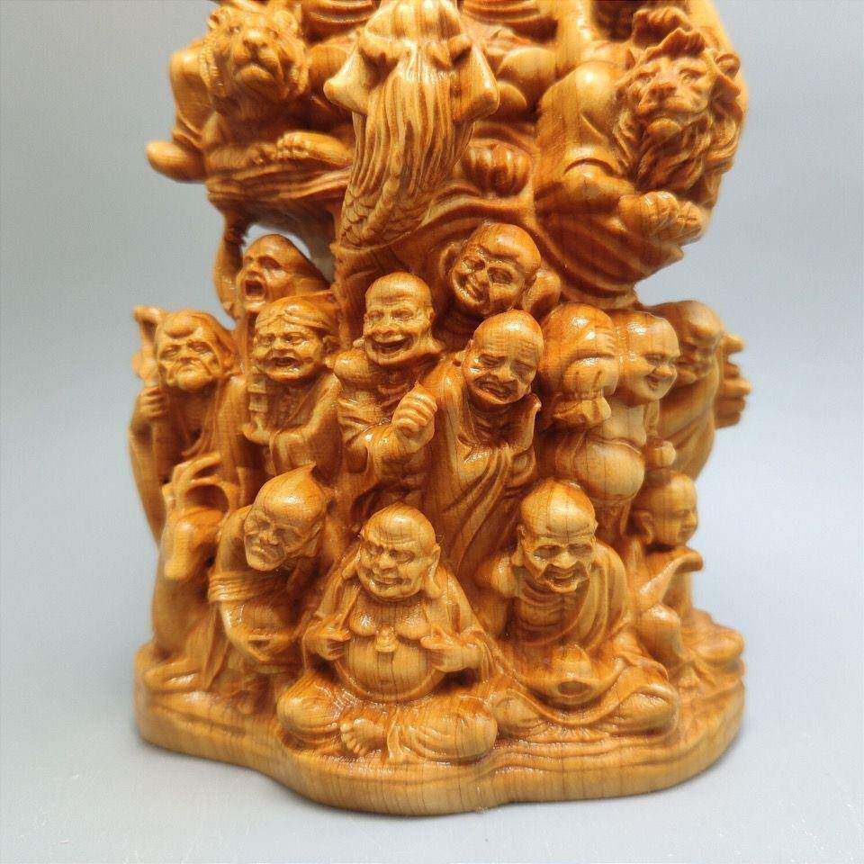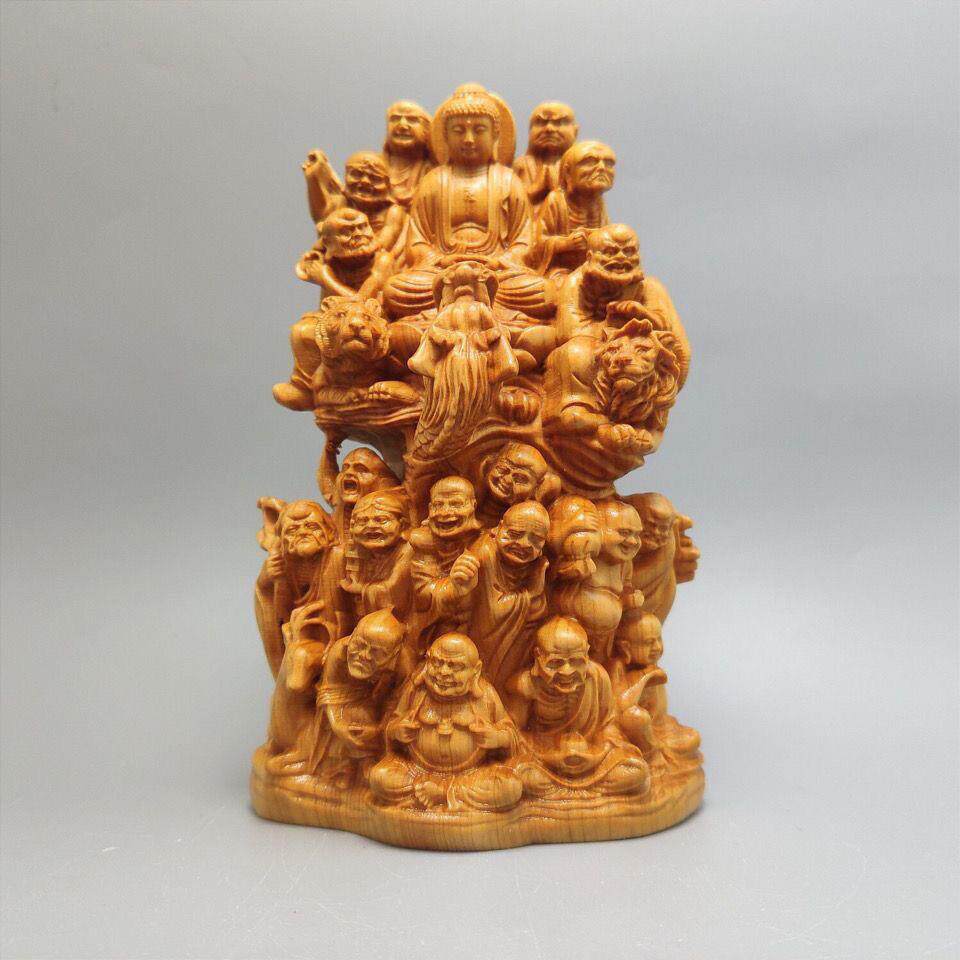 📚 崖柏南美八黄杨十罗汉摆件实木雕家居工艺品十八罗刻汉木20240813
