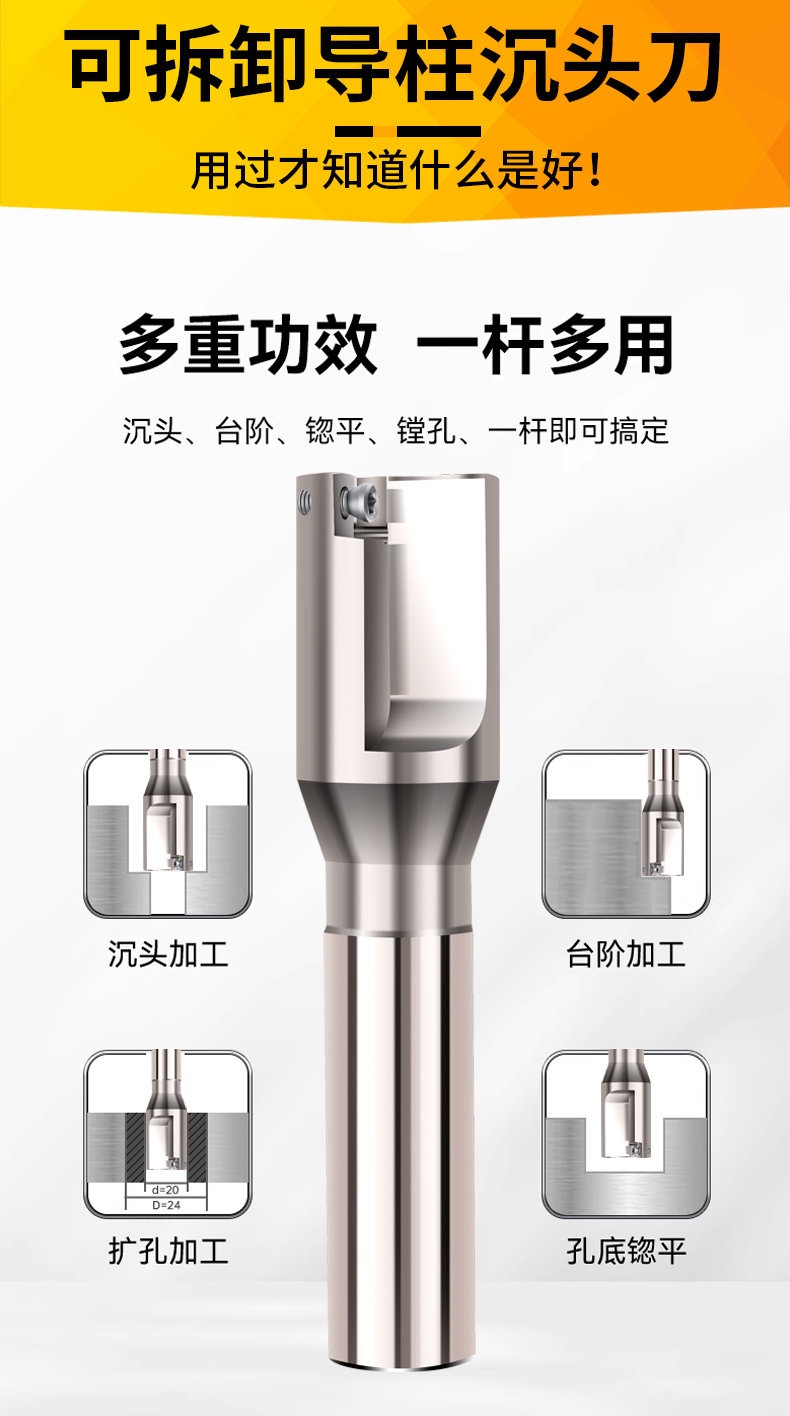📚 加工中心数控沉孔刀杯头螺丝沉头铣刀M8M10M12M16平底锪钻SP刀粒