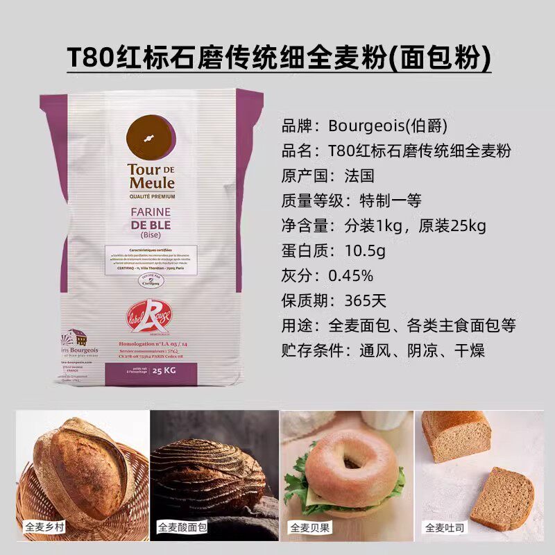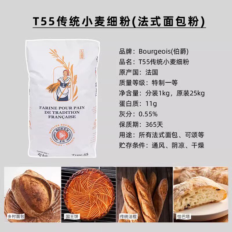 📚 法国巴黎伯爵T45T55T65T80T85T130T150T170面包粉小麦面粉1kg