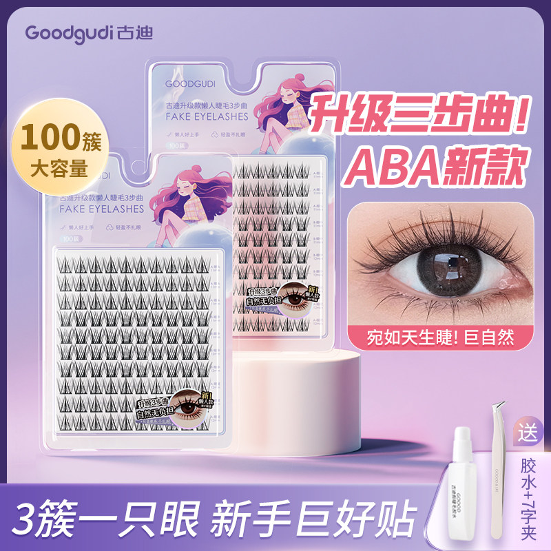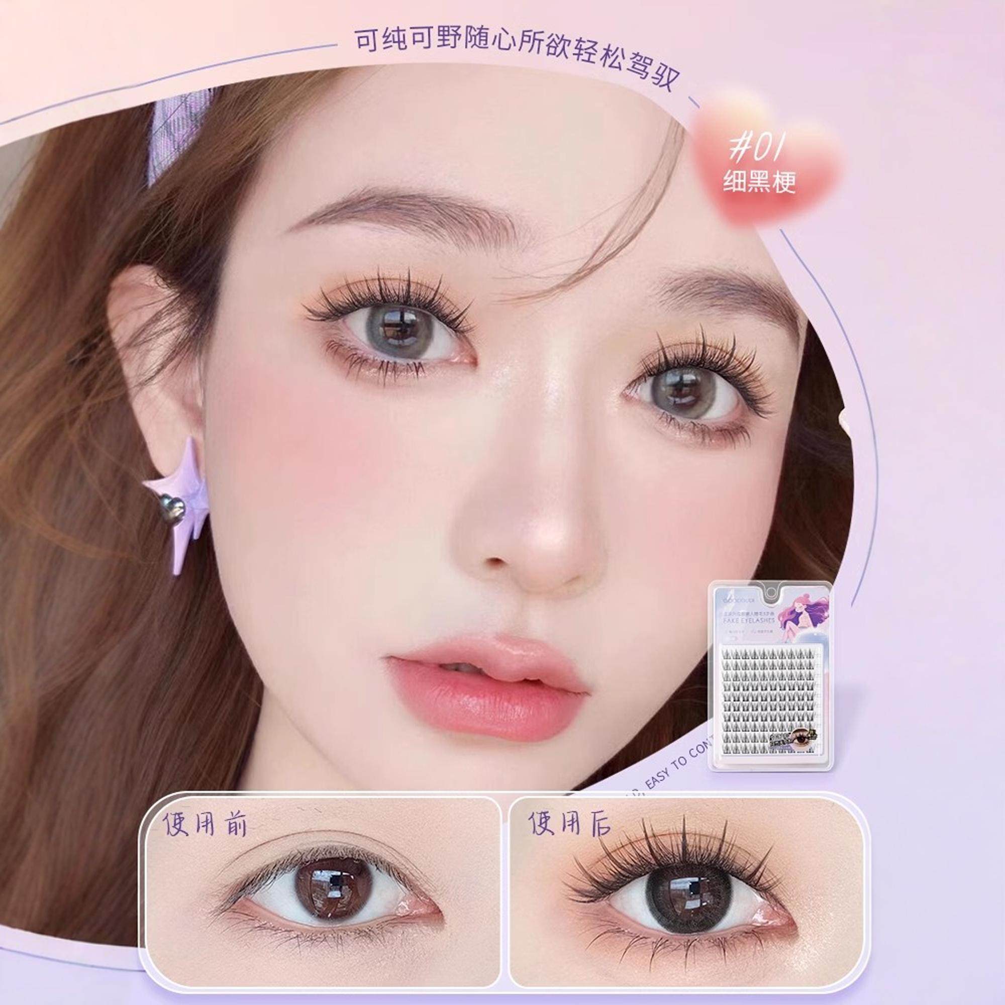 📚 懒人三步曲升级款ABA型平度假睫毛自然仿真单簇硬梗新手自粘嫁接