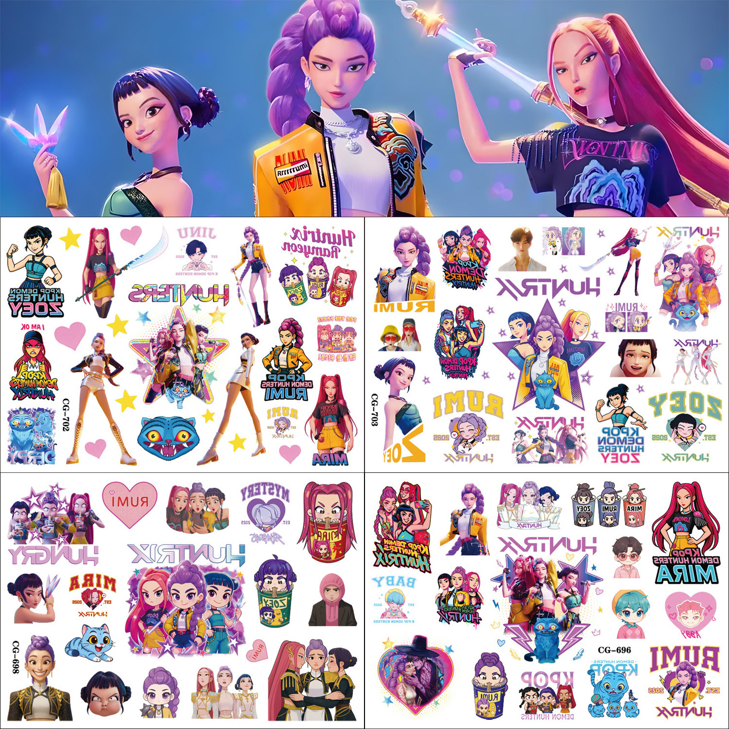 📚 猎魔女团KPOP主题派对儿童纹身贴纸生日聚会纹身一次性水转印贴画