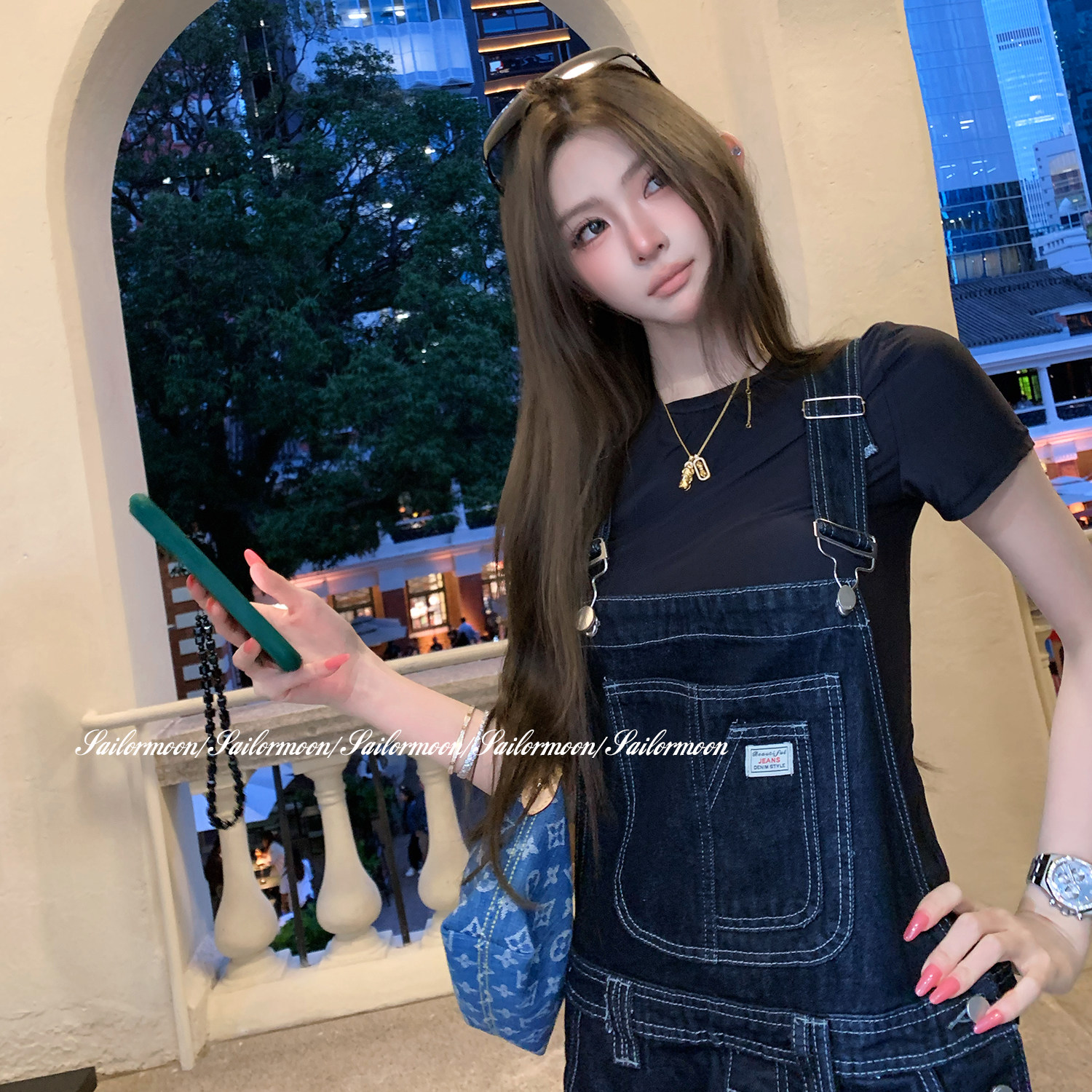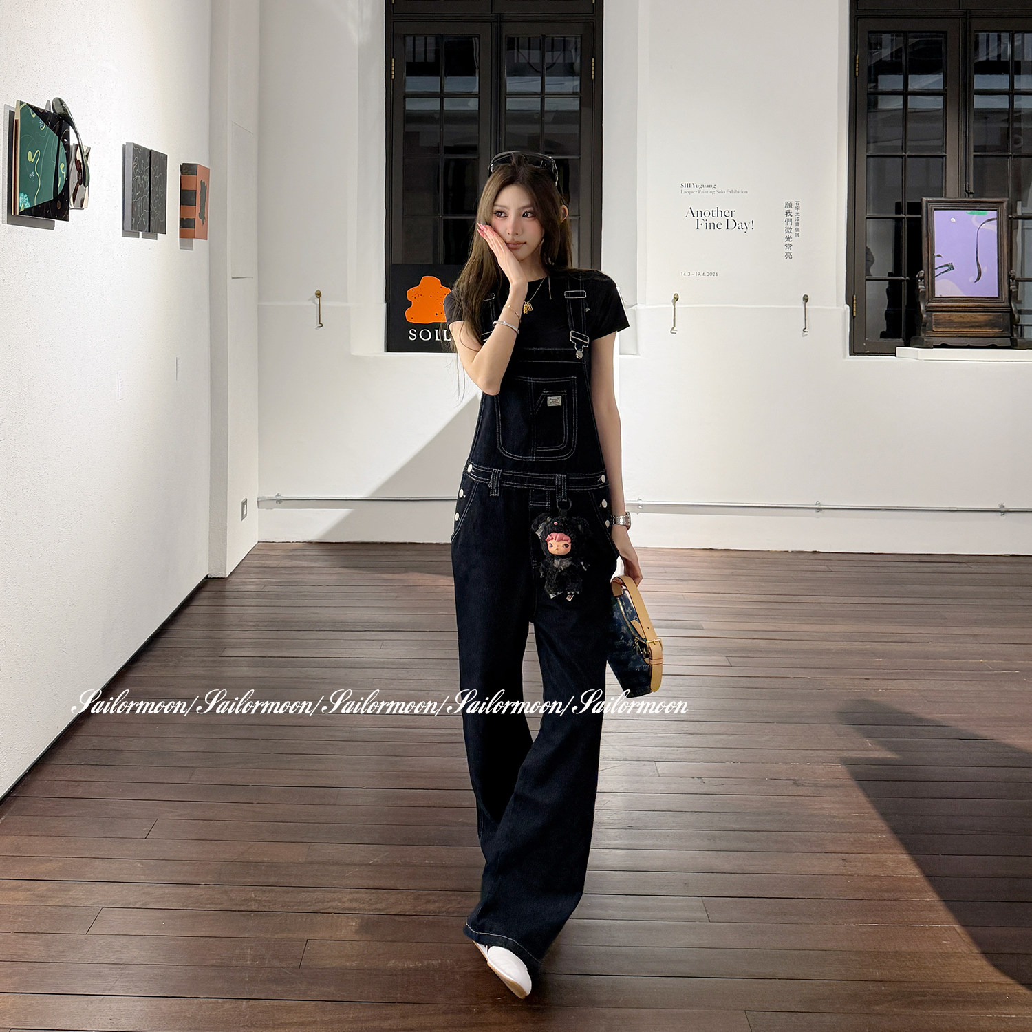 📚 F PROJECT【把妹王】时髦率性车明线原牛仔工装背带裤女休闲百搭