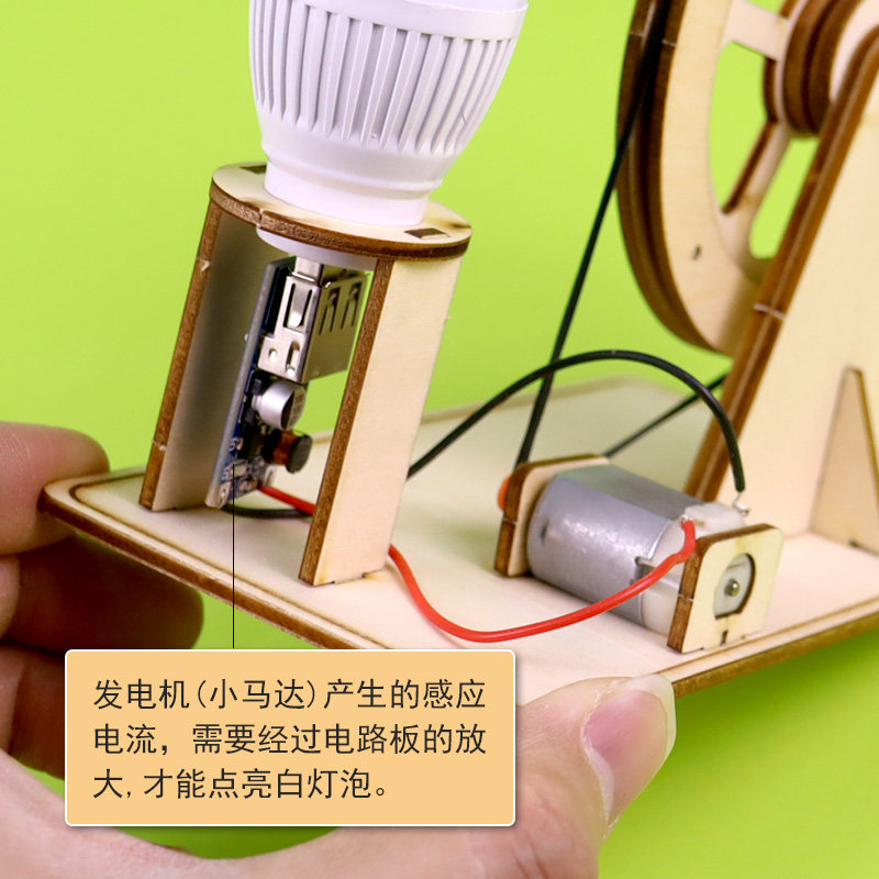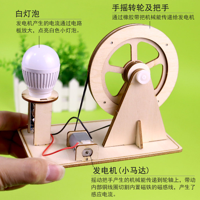 📚 自制手摇发电机儿童DIY科技小制作木质款小学生科学创意发明手工材料包动能转化电能物理电学实验发电机原理