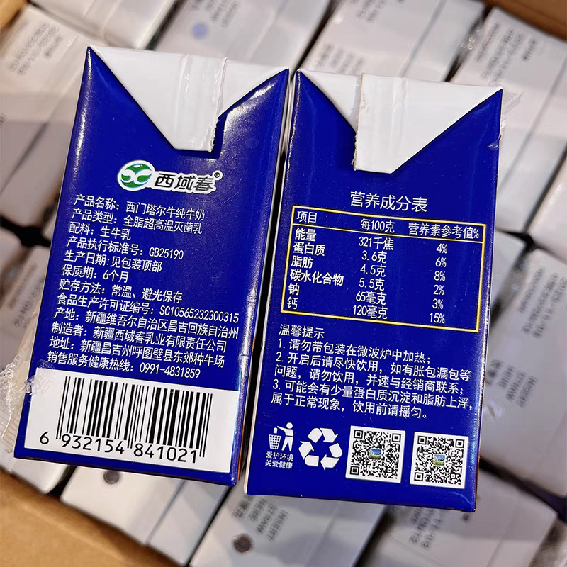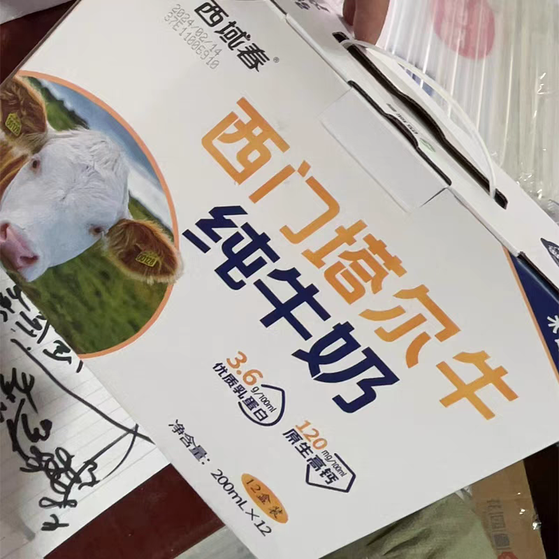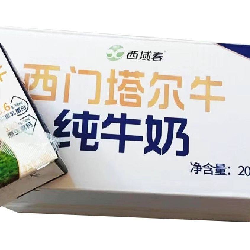 📚 新疆西域春西门塔尔牛纯牛奶200g*12盒整箱儿童学生营养早餐奶