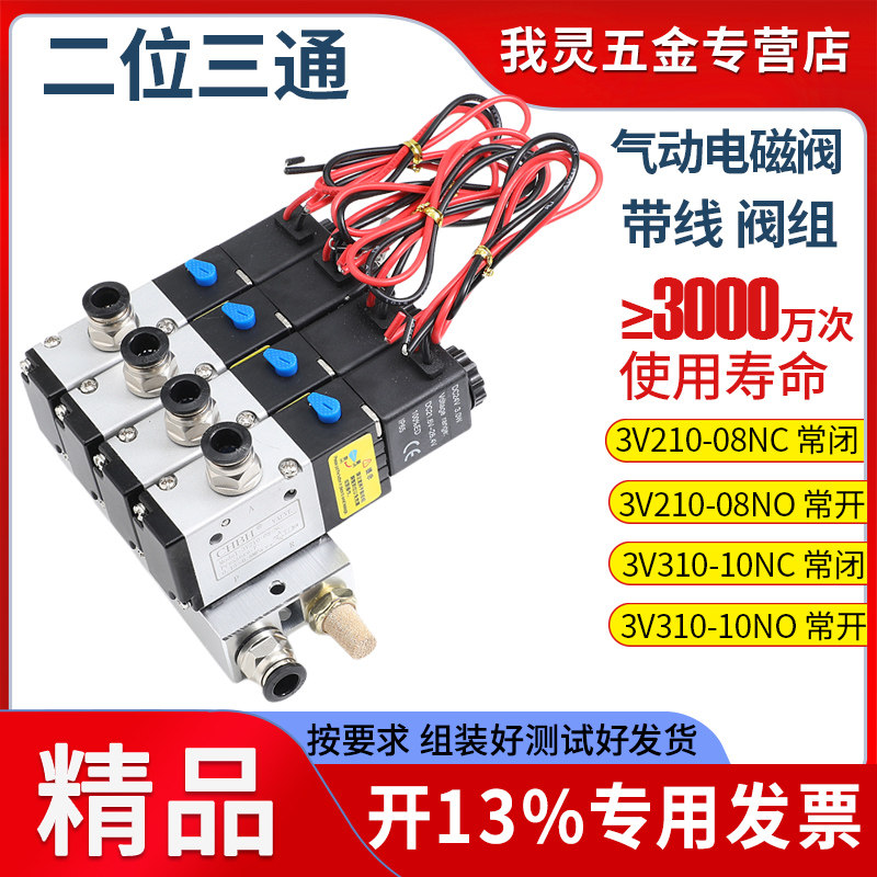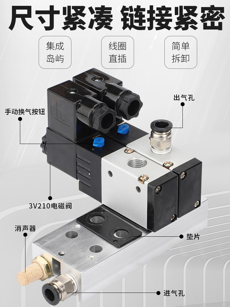 📚 气动开关电子二位三通电磁阀底座阀组3V210-08阀岛控制气阀DC24V